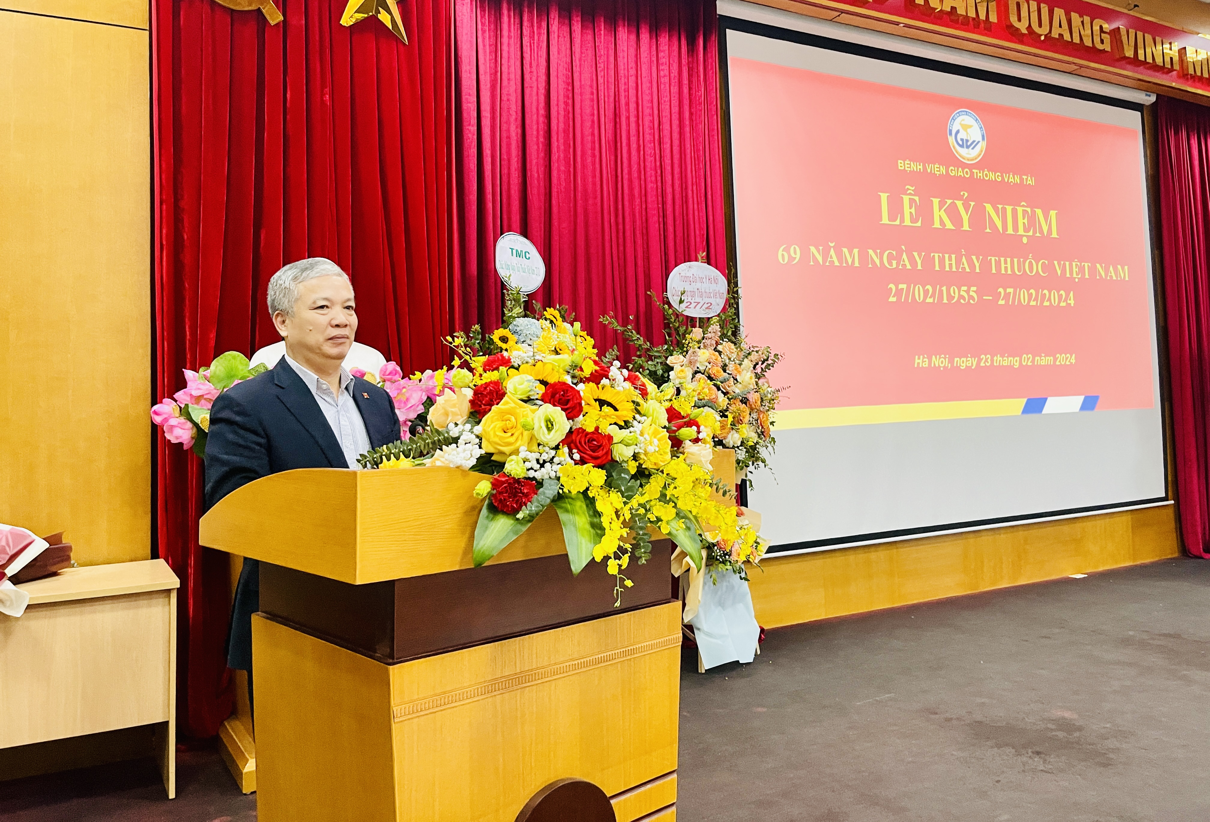 Tại buổi lễ, ông Lê Thanh Tuấn - Phó Tổng giám đốc SCIC, Chủ tịch Hội đồng quản trị Bệnh viện Giao thông vận tải ghi nhận và đánh giá cao sự đóng góp của các thế hệ y, bác sĩ, người lao động của Bệnh viện trong quá trình xây dựng, phát triển Bệnh viện trong suốt thời gian qua. Và nhân dịp ngày Thầy thuốc Việt Nam, Chủ tịch Hội đồng quản trị Bệnh viện cũng gửi lời chúc các bác sĩ, điều dưỡng và cán bộ nhân viên Bệnh viện Giao thông vận tải nhiều sức khỏe, hạnh phúc và nhiệt huyết để tiếp tục cống hiến cho sự nghiệp chăm sóc sức khỏe nhân dân.