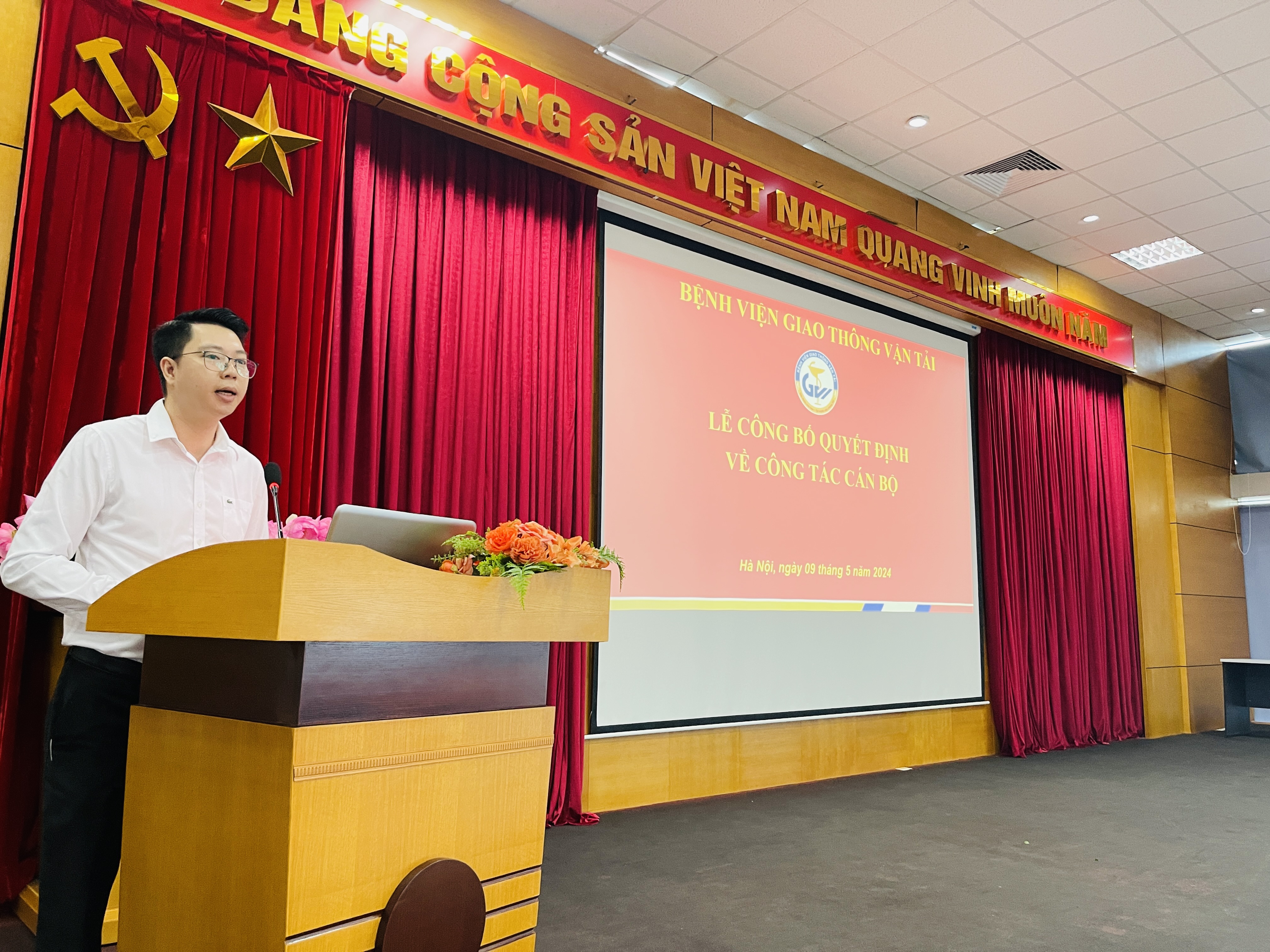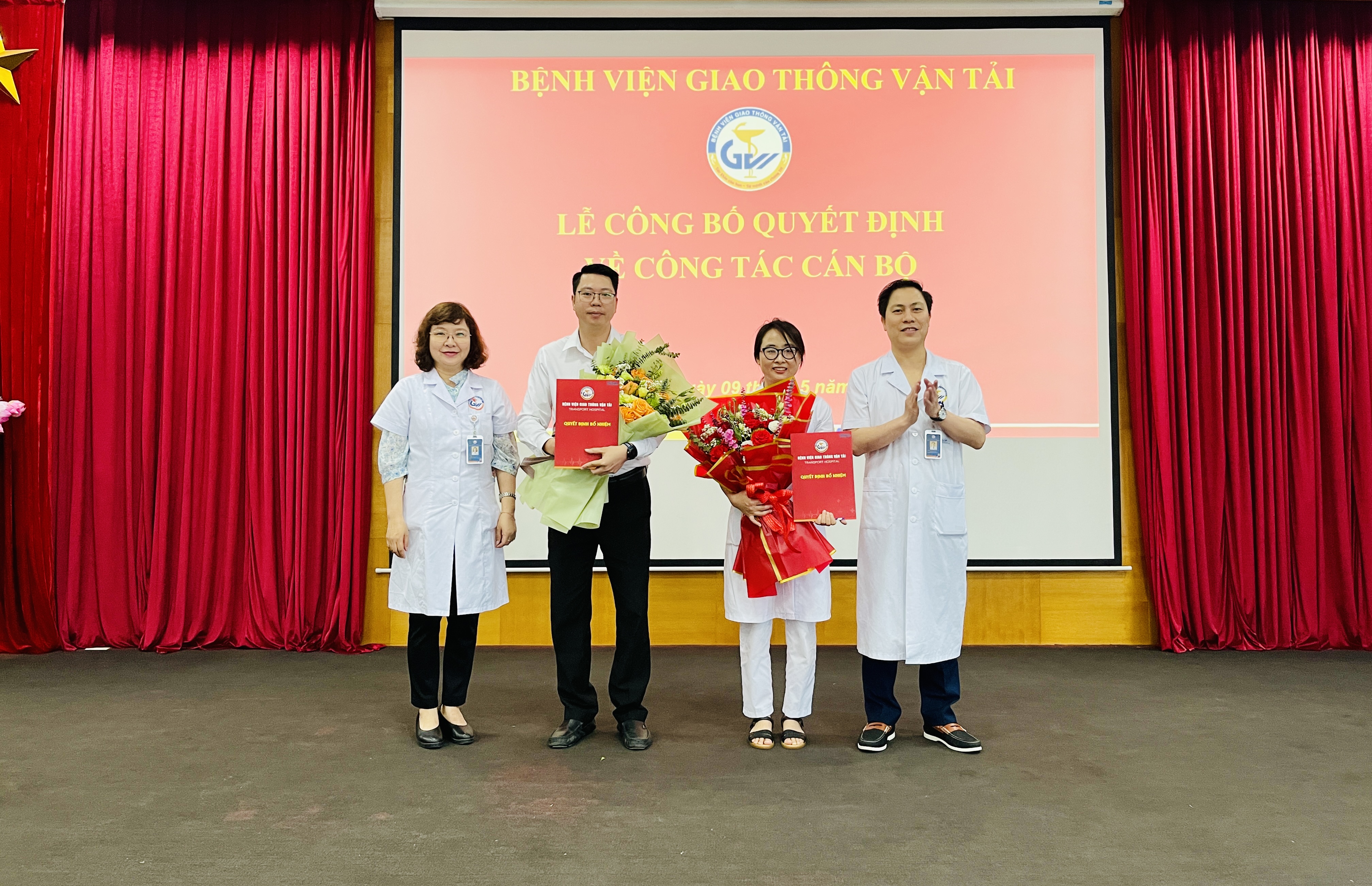 Theo các Quyết định công bố, BSCKI. Nguyễn Thị Thu Thùy - bác sĩ khoa Phục hồi chức năng được bổ nhiệm vị trí Phó trưởng khoa Phục hồi chức năng; ThS. Vũ Đức Phúc - chuyên viên phòng Hành chính quản trị được bổ nhiệm vị trí Phó trưởng phòng Hành chính quản trị. Thời gian bổ nhiệm 03 năm kể từ ngày 09/5/2024.