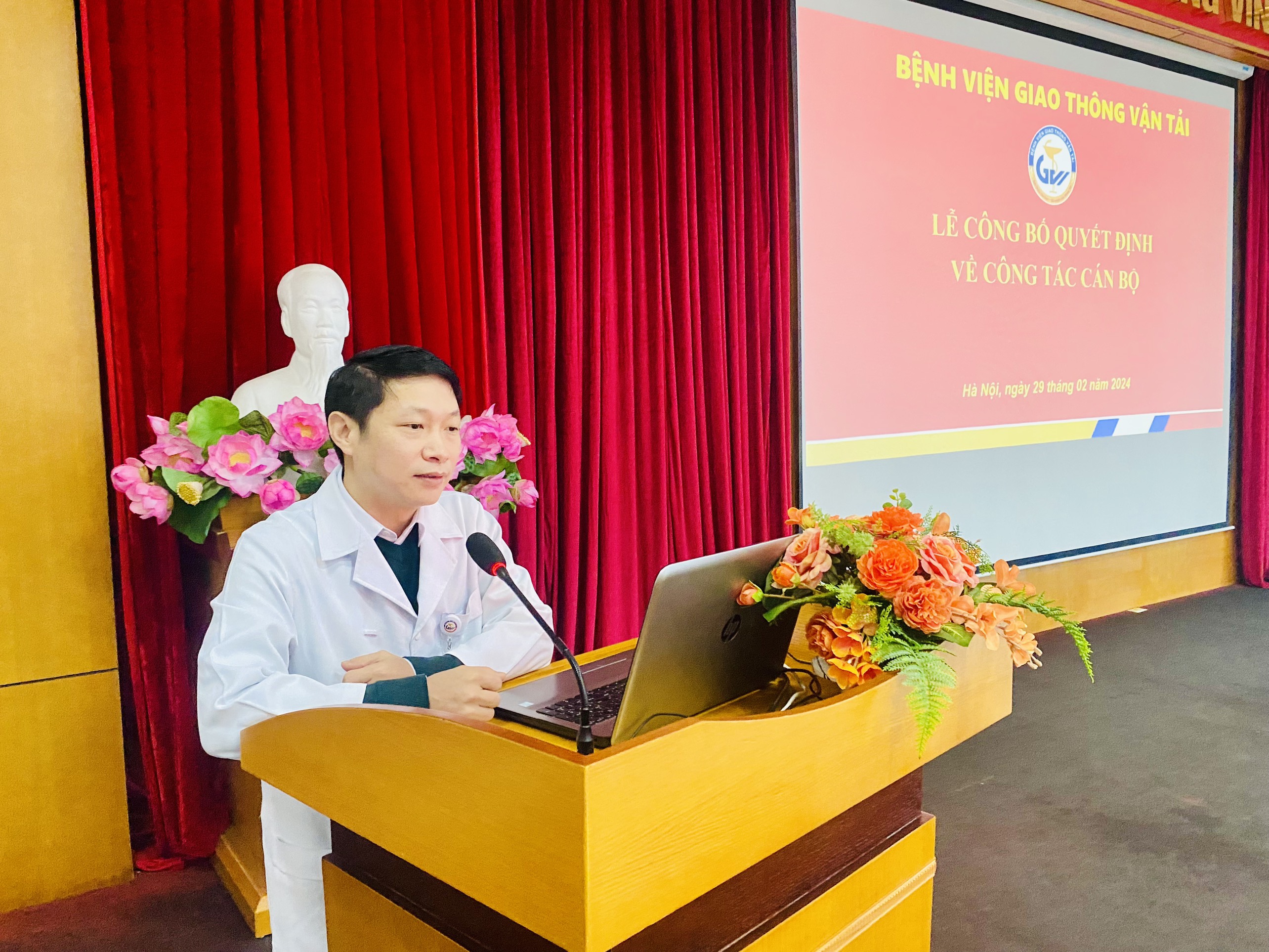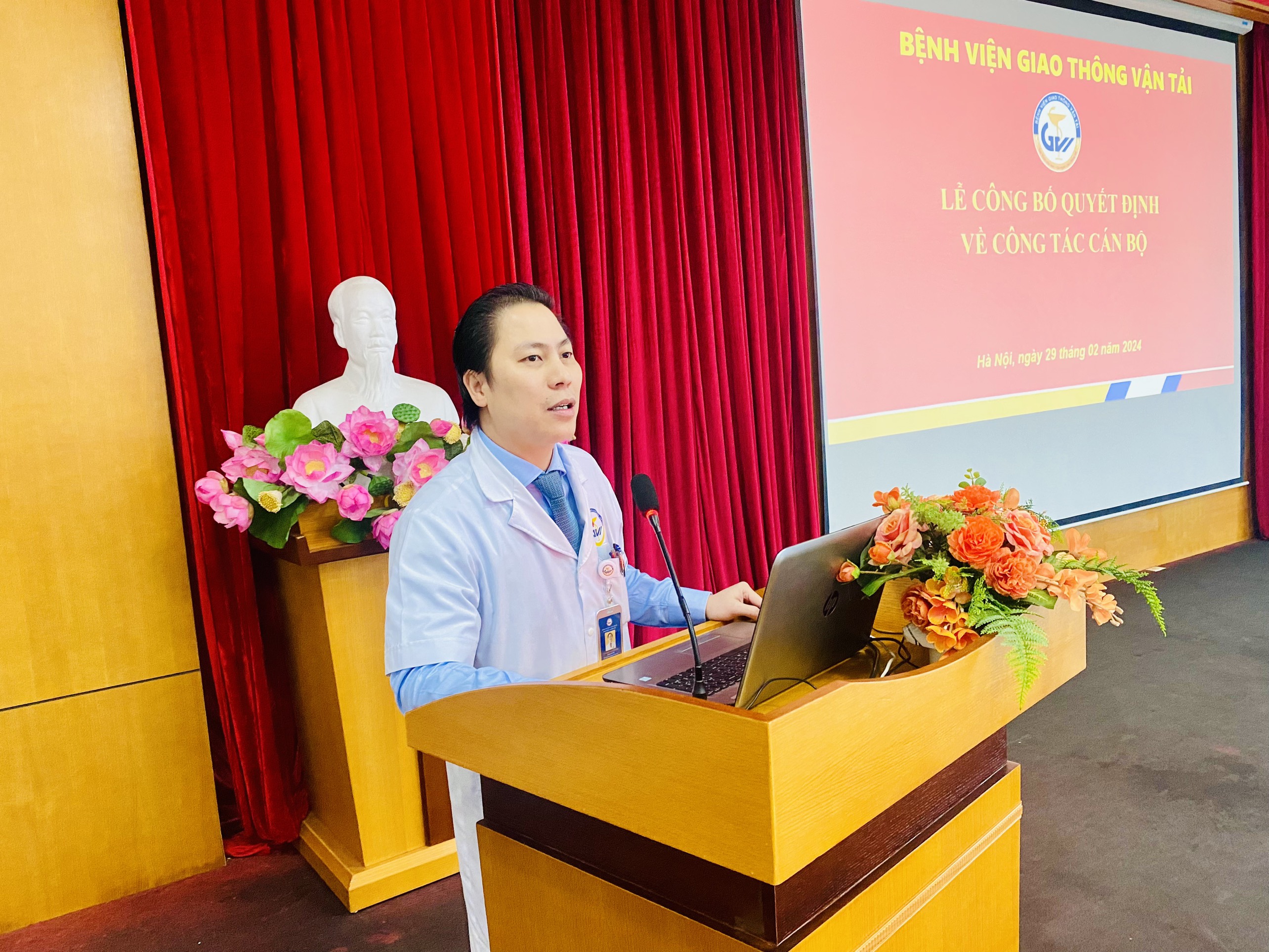 Phát biểu tại buổi lễ, TS.BS Bùi Sỹ Tuấn Anh - Bí thư Đảng ủy, Tổng giám đốc Bệnh viện chúc mừng các đồng chí mới được bổ nhiệm trong đợt này. Đồng chí mong muốn trên cương vị công tác mới, các đồng chí mới được bổ nhiệm tiếp tục phát huy đoàn kết, tập trung trí tuệ, sức lực của tập thể để hoàn thành xuất sắc các nhiệm vụ được giao.
