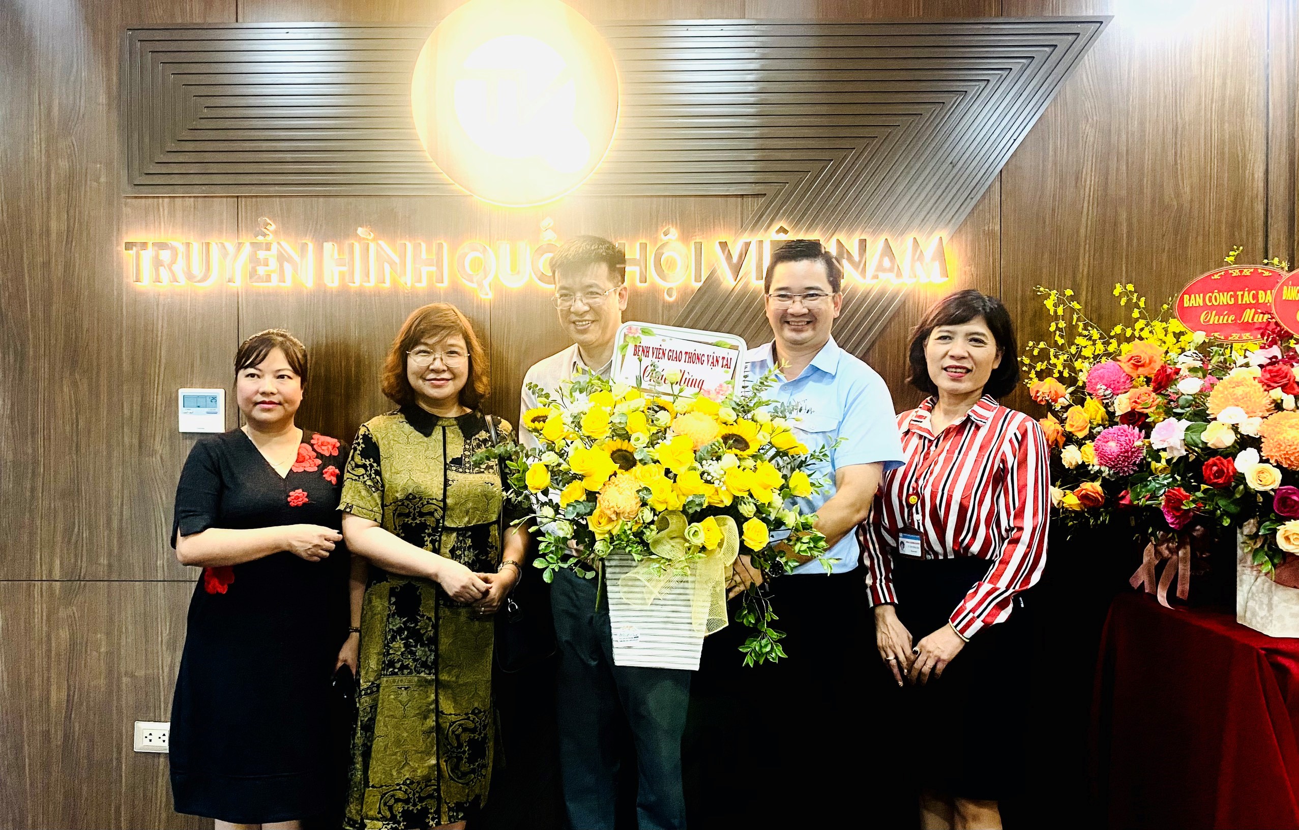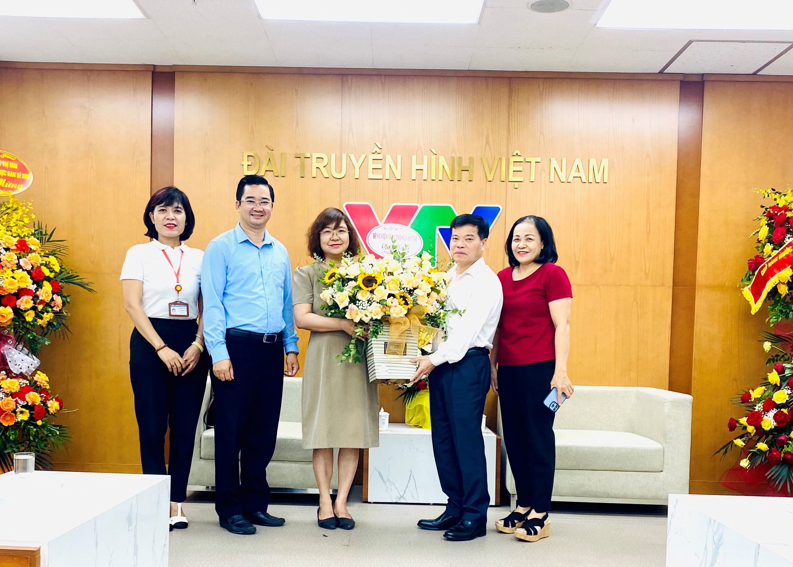 Đại diện Ban Lãnh đạo bệnh viện tặng hoa chúc mừng Đài truyền hình Việt Nam