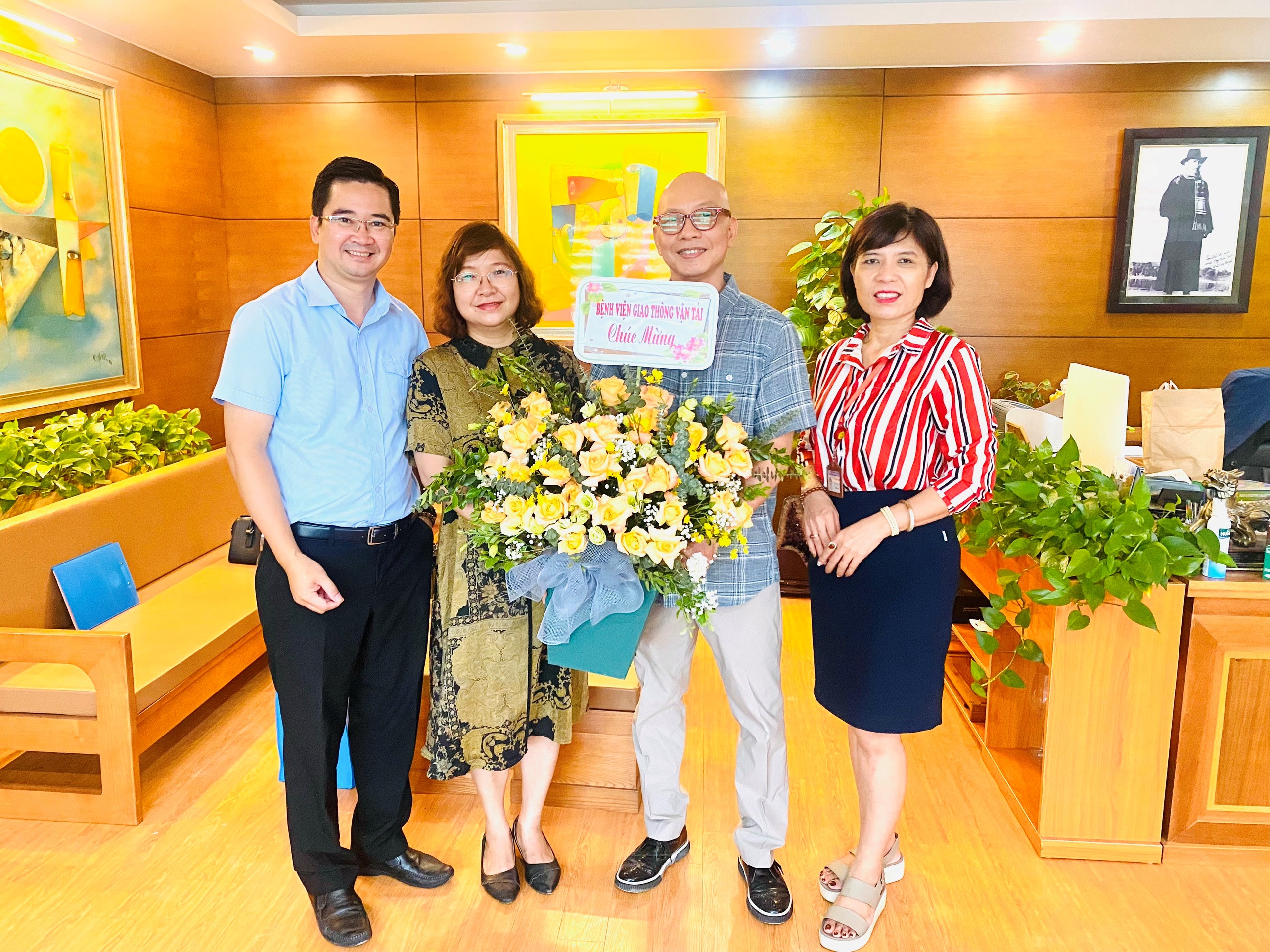 Đại diện Ban Lãnh đạo bệnh viện tặng hoa chúc mừng Đài tiếng nói Việt Nam - Kênh VOV Giao Thông