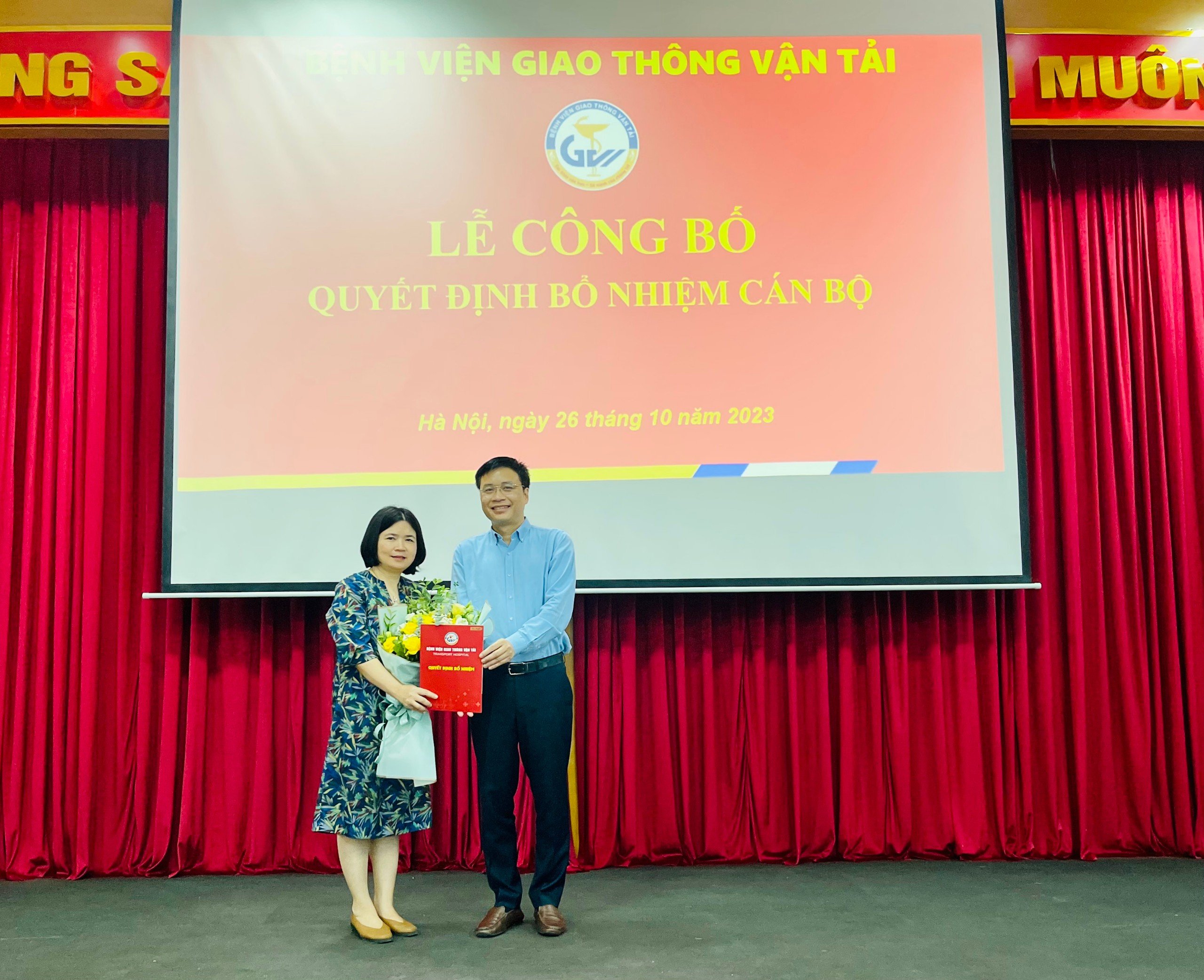 Ban Tổng giám đốc Bệnh viện trao quyết định bổ nhiệm lại cho ThS.BS Phùng Đức Thúy và CN Phạm Thị Hân.