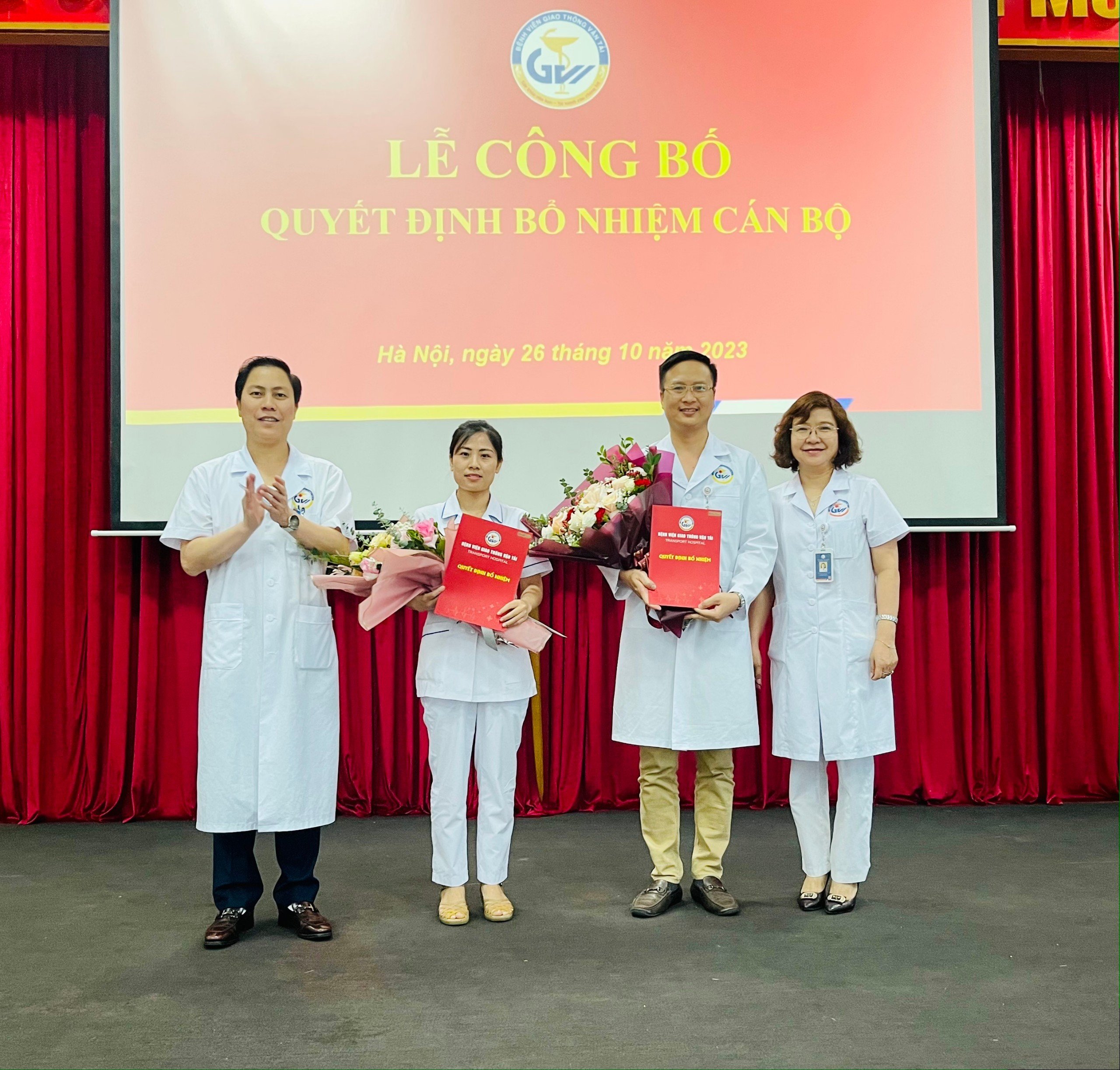 Mở đầu buổi Lễ, BSCKII. Nguyễn Thị Thu Hà - Trưởng khoa Hồi sức tích cực, Phó trưởng phòng phụ trách Phòng Tổ chức nhân sự đã công bố các quyết định bổ nhiệm. Theo đó, ThS. Đào Thị Thanh Huyền – Phụ trách phòng Tài chính kế toán được bổ nhiệm lại chức vụ Kế toán trưởng bệnh viện; ThS.BS. Phùng Đức Thúy được bổ nhiệm lại chức vụ Phó trưởng khoa Hồi sức tích cực; Cử nhân Phạm Thị Hân được bổ nhiệm chức vụ Nữ hộ sinh trưởng, khoa Phụ sản và sơ sinh.