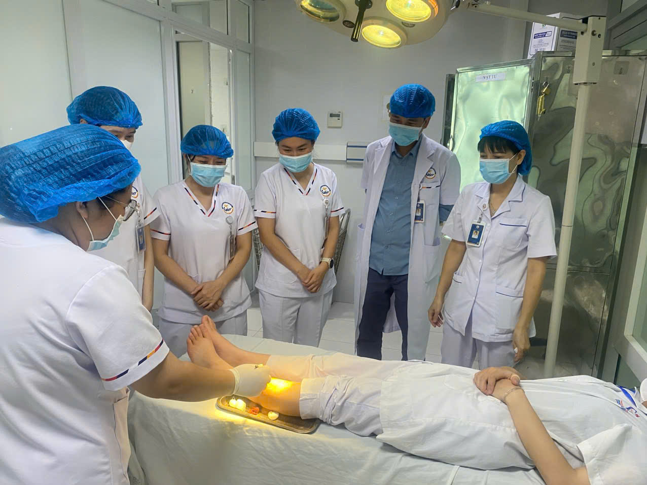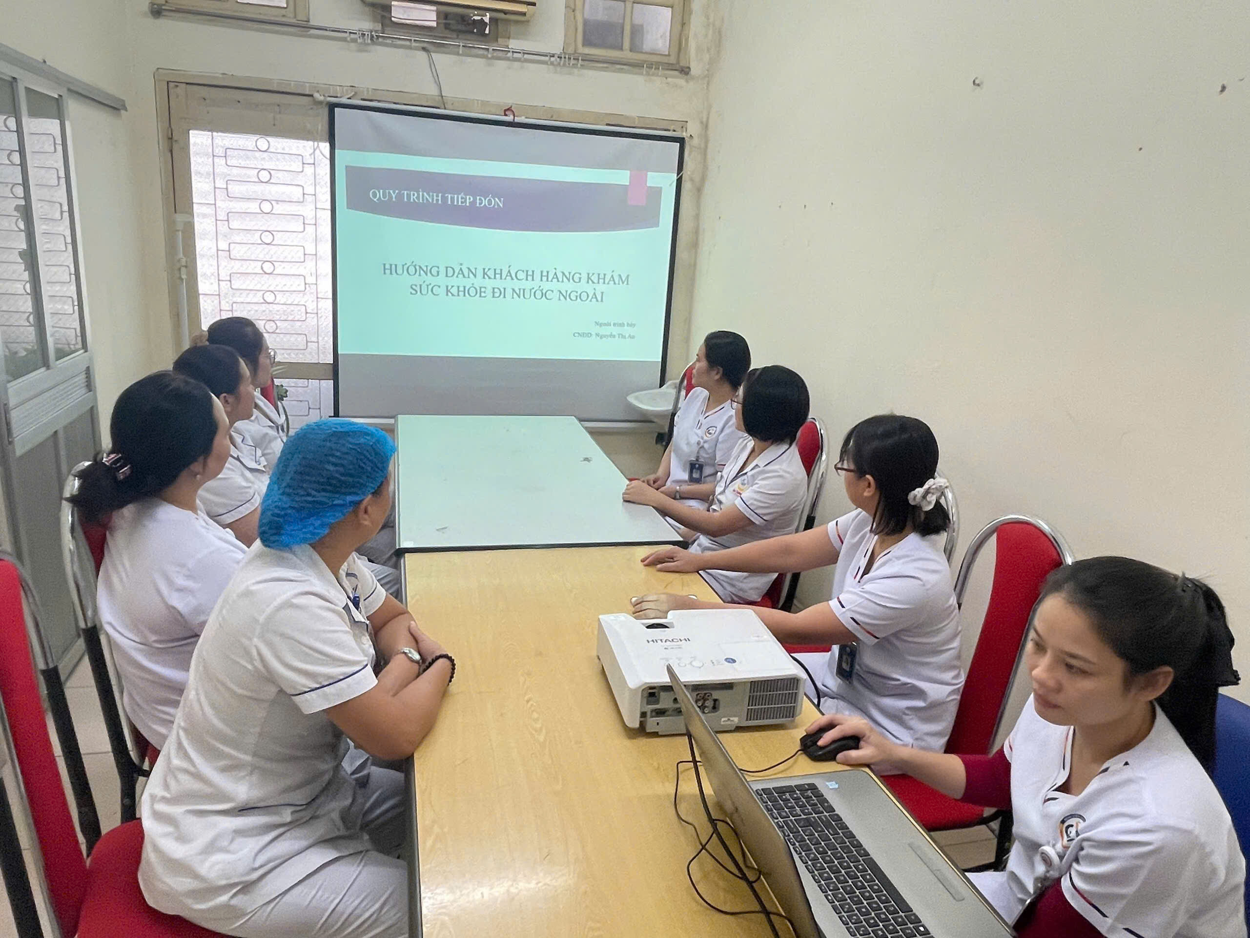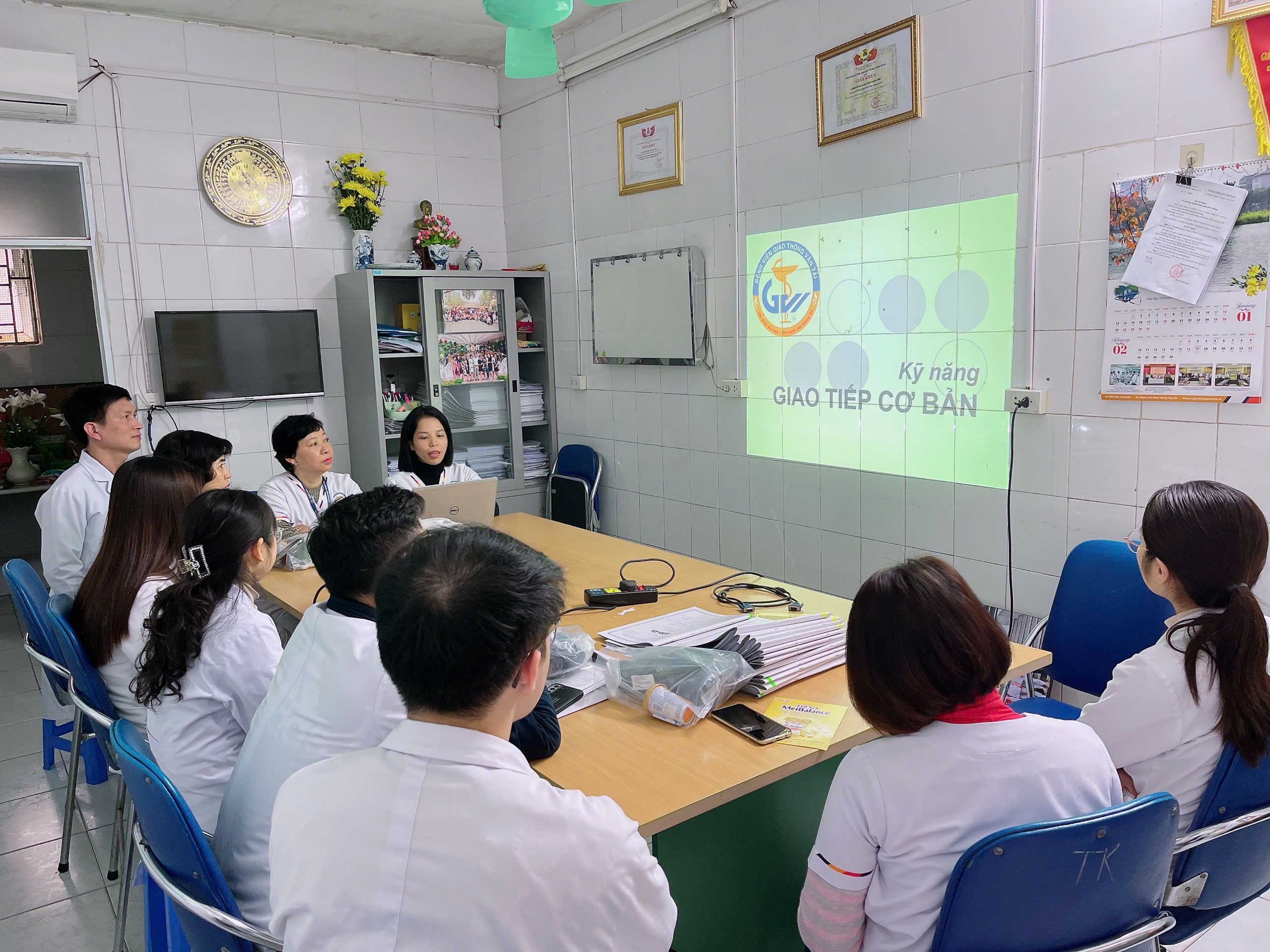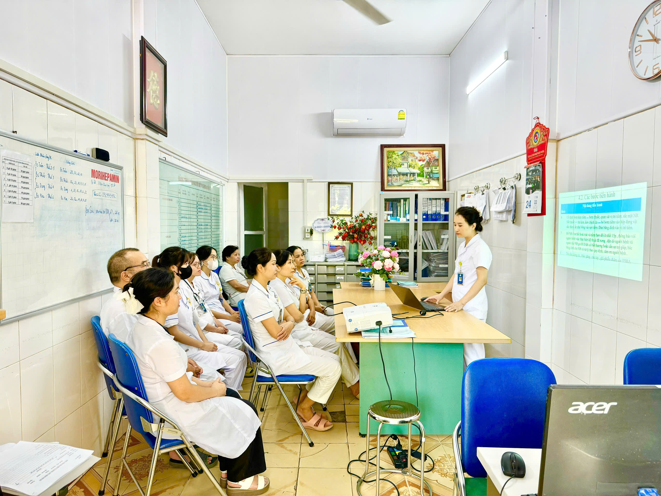 Được sự đồng ý và hỗ trợ của Ban Giám đốc, trong gần 01 năm trở lại đây phòng Điều dưỡng đã phối hợp với các khoa tổ chức thành công các khóa đào tạo tại chỗ trong Bệnh viện với tổng số 85 buổi đào tạo tại 21 khoa lâm sàng và cận lâm sàng với các nội dung phong phú và đa dạng, phù hợp với nhu cầu của từng khoa như: Về giao tiếp ứng xử trong bệnh viện, tư vấn truyền thông giáo dục sức khỏe cho người bệnh: 07 buổi; các thông tư, nghị định liên quan đến công tác Điều dưỡng như: Thông tư 31/2021/TT-BYT về hoạt động Điều dưỡng trong bệnh viện, Thông tư 20/2021/TT-BYT về quản lý chất thải y tế trong bệnh viện, Thông tư 51/20217/TT-BYT về hướng dẫn phòng, chẩn đoán và xử trí sốc phản vệ, Thông tư 072014/TT-BYT quy định về giao tiếp ứng xử của cán bộ công chức, viên chức, người lao động tại các cơ sở y tế...:19 buổi; các quy trình kỹ thuật, chăm sóc người bệnh tại các khoa: 59 buổi.