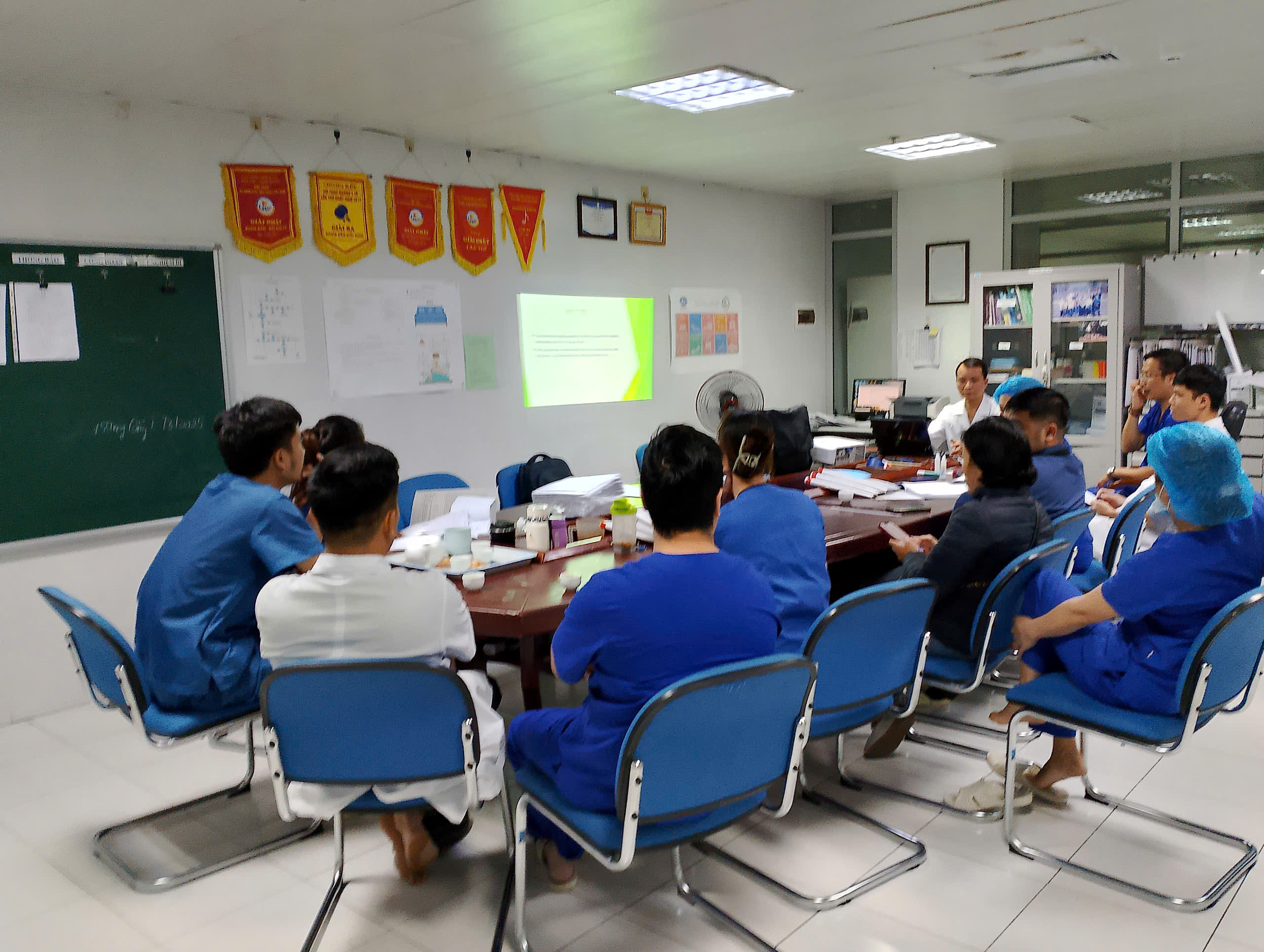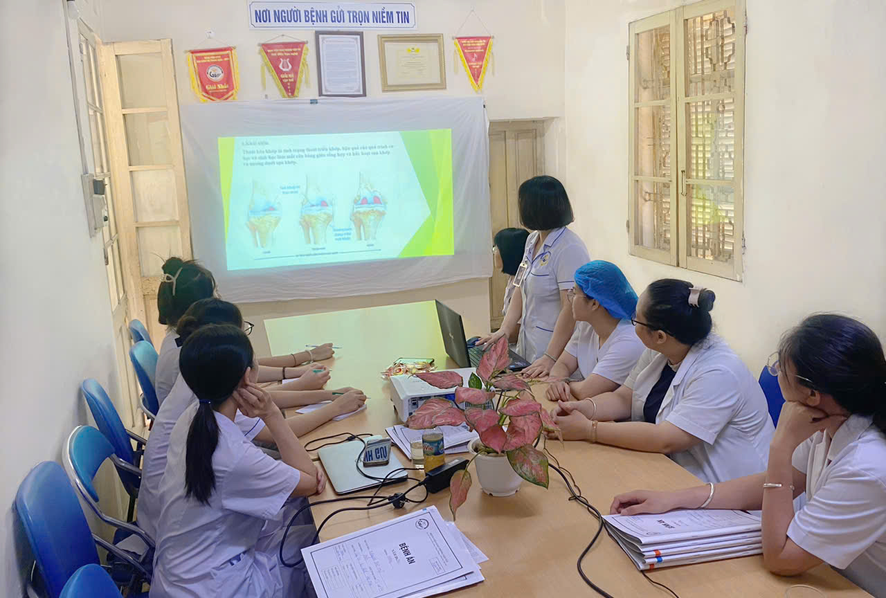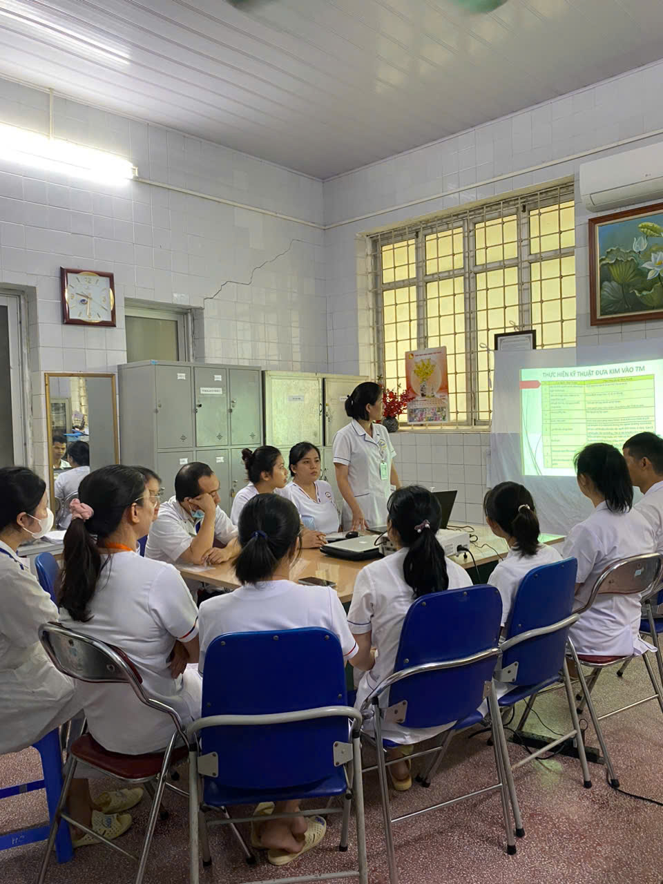 Được sự đồng ý và hỗ trợ của Ban Giám đốc, trong gần 01 năm trở lại đây phòng Điều dưỡng đã phối hợp với các khoa tổ chức thành công các khóa đào tạo tại chỗ trong Bệnh viện với tổng số 85 buổi đào tạo tại 21 khoa lâm sàng và cận lâm sàng với các nội dung phong phú và đa dạng, phù hợp với nhu cầu của từng khoa như: Về giao tiếp ứng xử trong bệnh viện, tư vấn truyền thông giáo dục sức khỏe cho người bệnh: 07 buổi; các thông tư, nghị định liên quan đến công tác Điều dưỡng như: Thông tư 31/2021/TT-BYT về hoạt động Điều dưỡng trong bệnh viện, Thông tư 20/2021/TT-BYT về quản lý chất thải y tế trong bệnh viện, Thông tư 51/20217/TT-BYT về hướng dẫn phòng, chẩn đoán và xử trí sốc phản vệ, Thông tư 072014/TT-BYT quy định về giao tiếp ứng xử của cán bộ công chức, viên chức, người lao động tại các cơ sở y tế...:19 buổi; các quy trình kỹ thuật, chăm sóc người bệnh tại các khoa: 59 buổi.