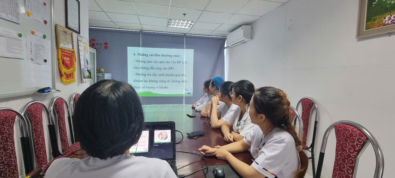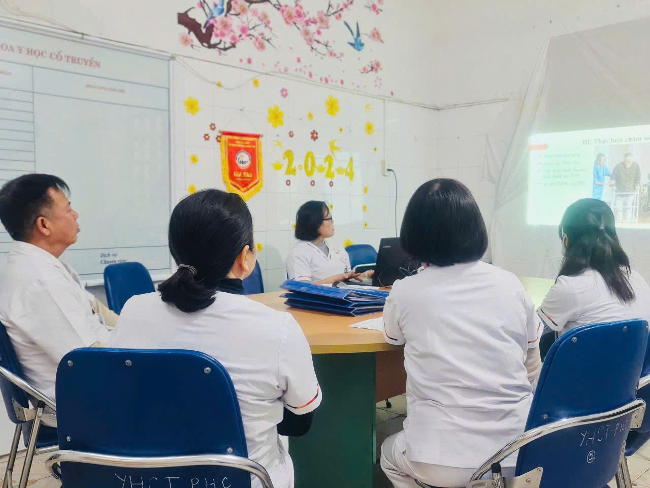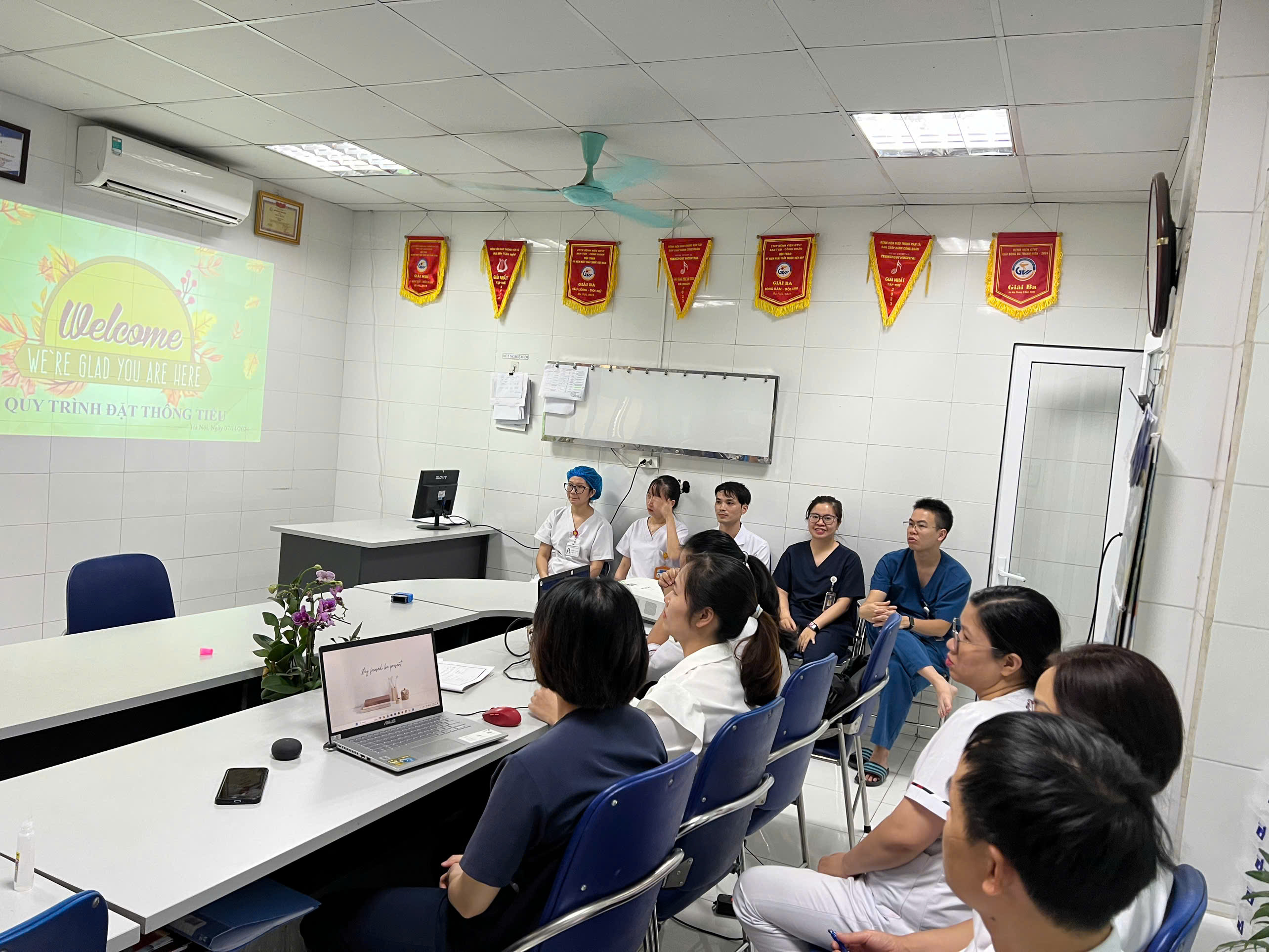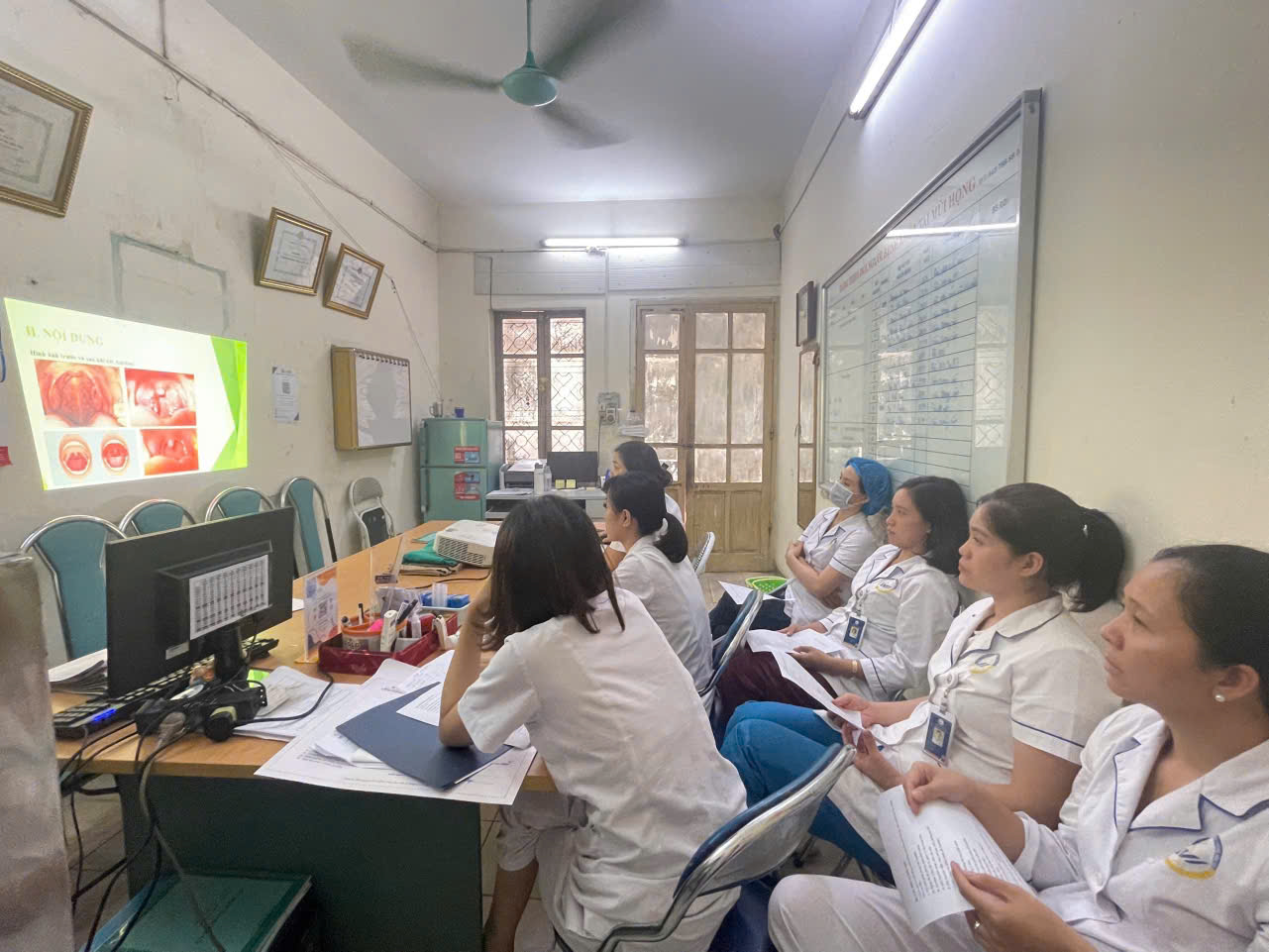 Được sự đồng ý và hỗ trợ của Ban Giám đốc, trong gần 01 năm trở lại đây phòng Điều dưỡng đã phối hợp với các khoa tổ chức thành công các khóa đào tạo tại chỗ trong Bệnh viện với tổng số 85 buổi đào tạo tại 21 khoa lâm sàng và cận lâm sàng với các nội dung phong phú và đa dạng, phù hợp với nhu cầu của từng khoa như: Về giao tiếp ứng xử trong bệnh viện, tư vấn truyền thông giáo dục sức khỏe cho người bệnh: 07 buổi; các thông tư, nghị định liên quan đến công tác Điều dưỡng như: Thông tư 31/2021/TT-BYT về hoạt động Điều dưỡng trong bệnh viện, Thông tư 20/2021/TT-BYT về quản lý chất thải y tế trong bệnh viện, Thông tư 51/20217/TT-BYT về hướng dẫn phòng, chẩn đoán và xử trí sốc phản vệ, Thông tư 072014/TT-BYT quy định về giao tiếp ứng xử của cán bộ công chức, viên chức, người lao động tại các cơ sở y tế...:19 buổi; các quy trình kỹ thuật, chăm sóc người bệnh tại các khoa: 59 buổi.