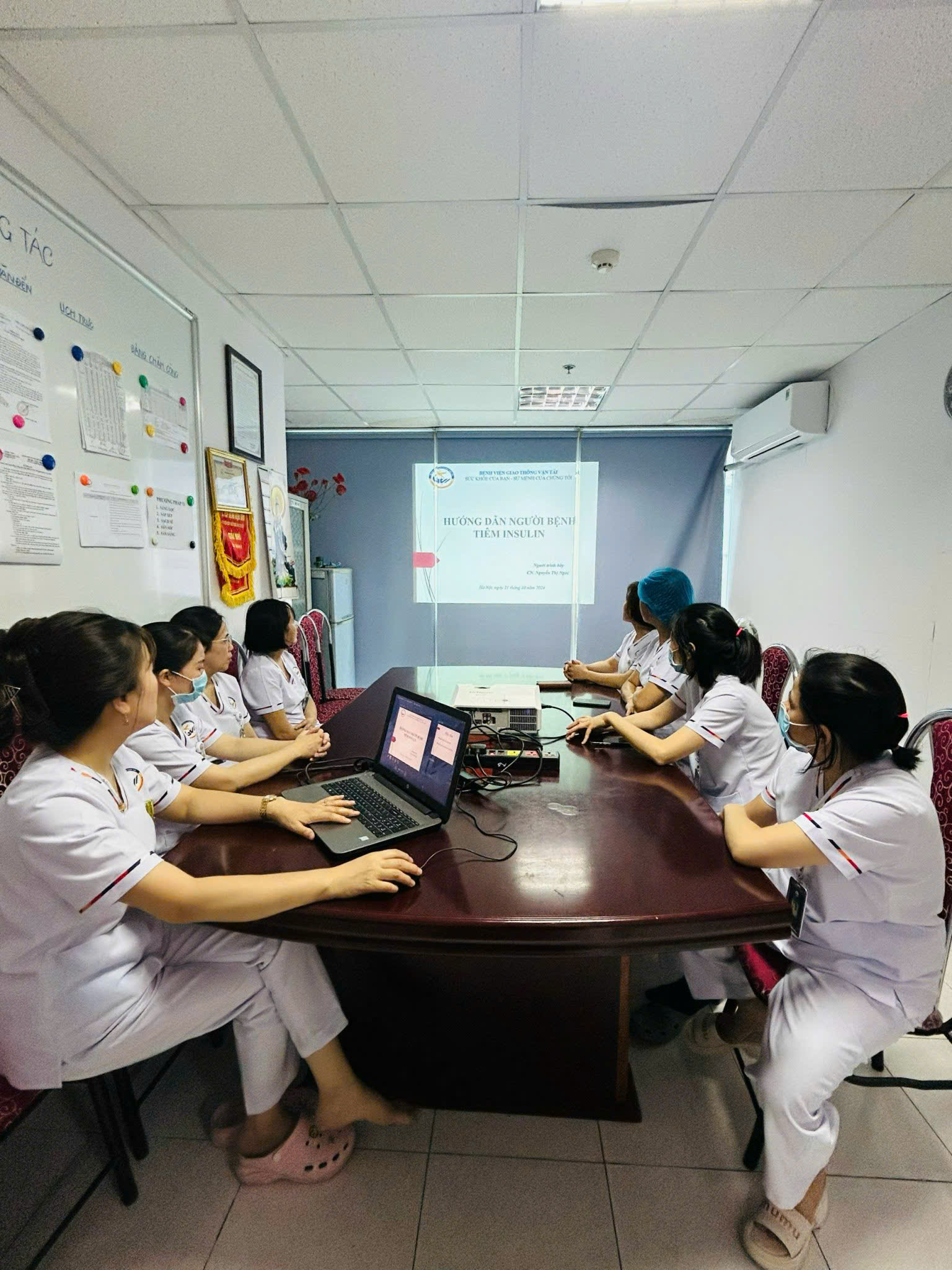 Phòng Điều dưỡng xây dựng kế hoạch, triển khai thực hiện đào tạo liên tục hàng năm với các nội dung đào tạo đa dạng, phong phú bao gồm “Chăm sóc người bệnh toàn diện”, “Thực hiện quy trình kỹ thuật Điều dưỡng”, “Bài giảng chăm sóc người bệnh”, “Giao tiếp ứng xử và tư vấn giáo dực sức khỏe cho người bệnh”….