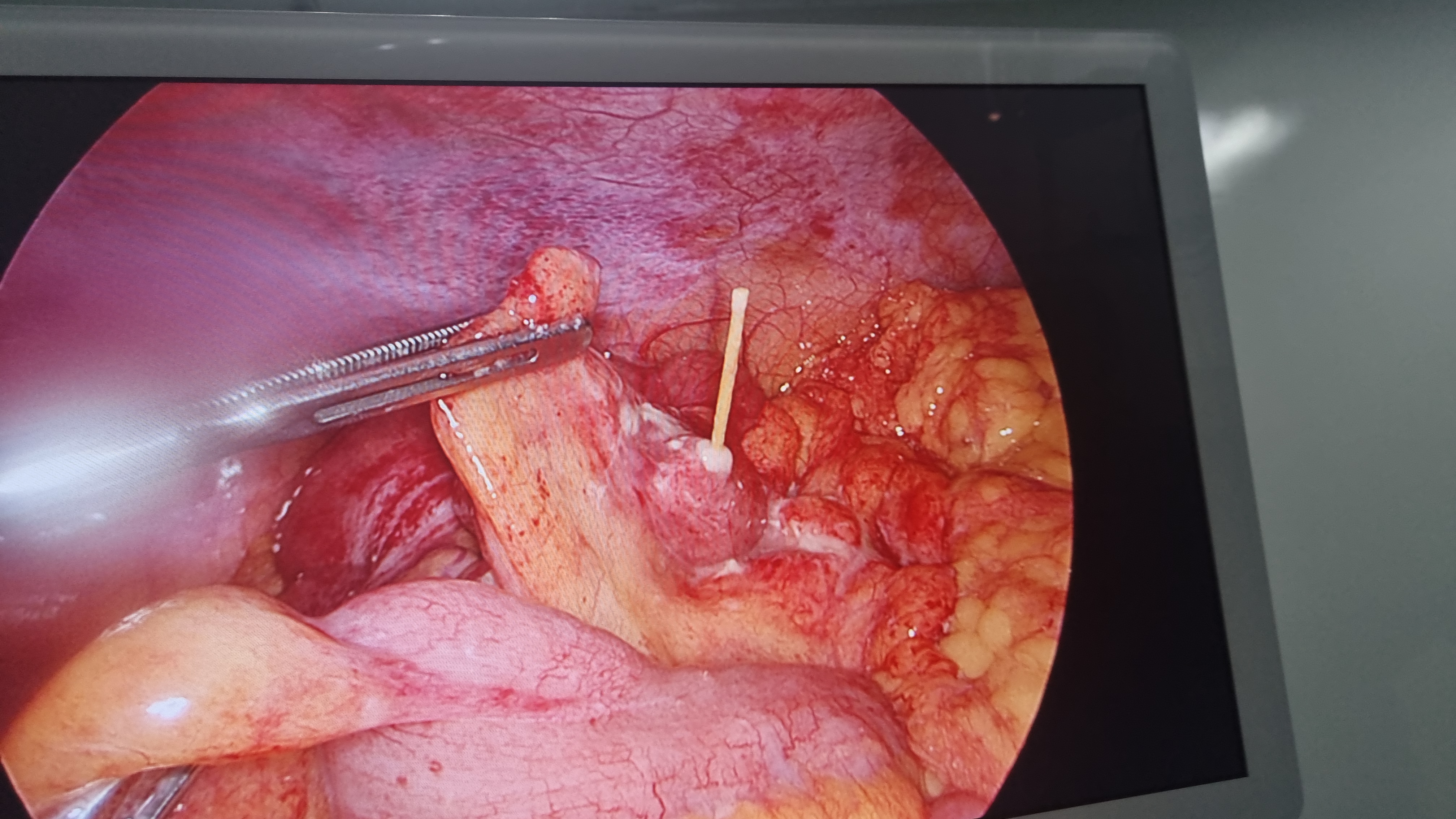 Bác sỹ chuyên khoa II Đặng Thành Đông, Phó trưởng khoa Ngoại tổng hợp cùng kíp mổ đã tiến hành phẫu thuật cho bệnh nhân. Kiểm tra trong mổ thấy nguyên nhân gây viêm phúc mạc do đại tràng lên bị đâm thủng bởi một chiếc tăm tre còn nguyên vẹn dài khoảng 6,5cm. Các bác sỹ đã tiến hành lấy bỏ dị vật, làm sạch và khâu lỗ thủng đại tràng. Ngoài ra kiểm tra ổ bụng còn phát hiện bệnh nhân có túi thừa Meckel (một túi thừa của ruột non gặp ở 2% dân số) có kích thước khoảng 2 x 5 cm. Kíp mổ đã phẫu thuật nội soi cắt túi thừa này.