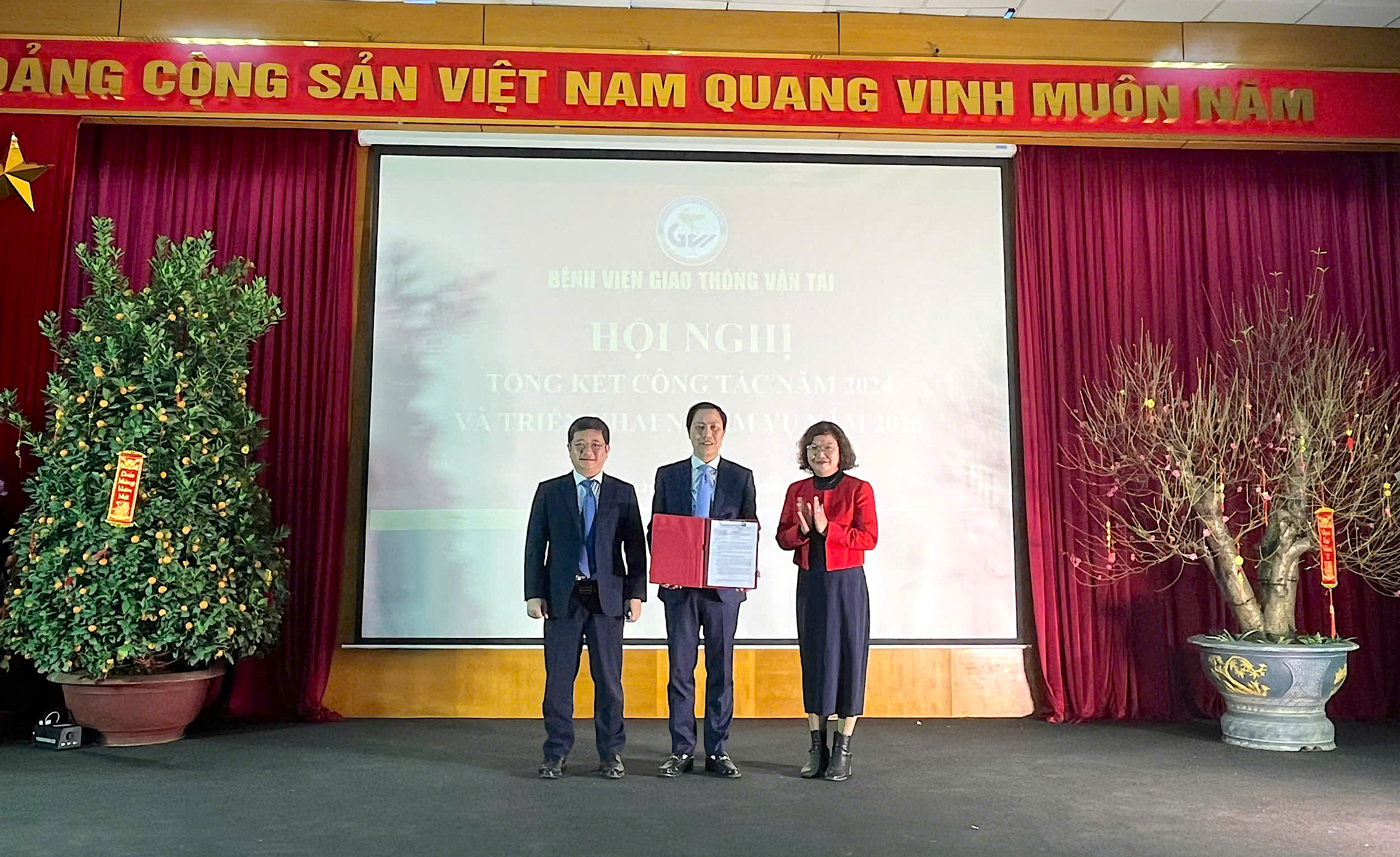 Ông Đinh Việt Tùng - Phó Tổng giám đốc SCIC trao Quyết định công nhận danh hiệu thi đua “Tập thể lao động xuất sắc” cho Bệnh viện Giao thông vận tải