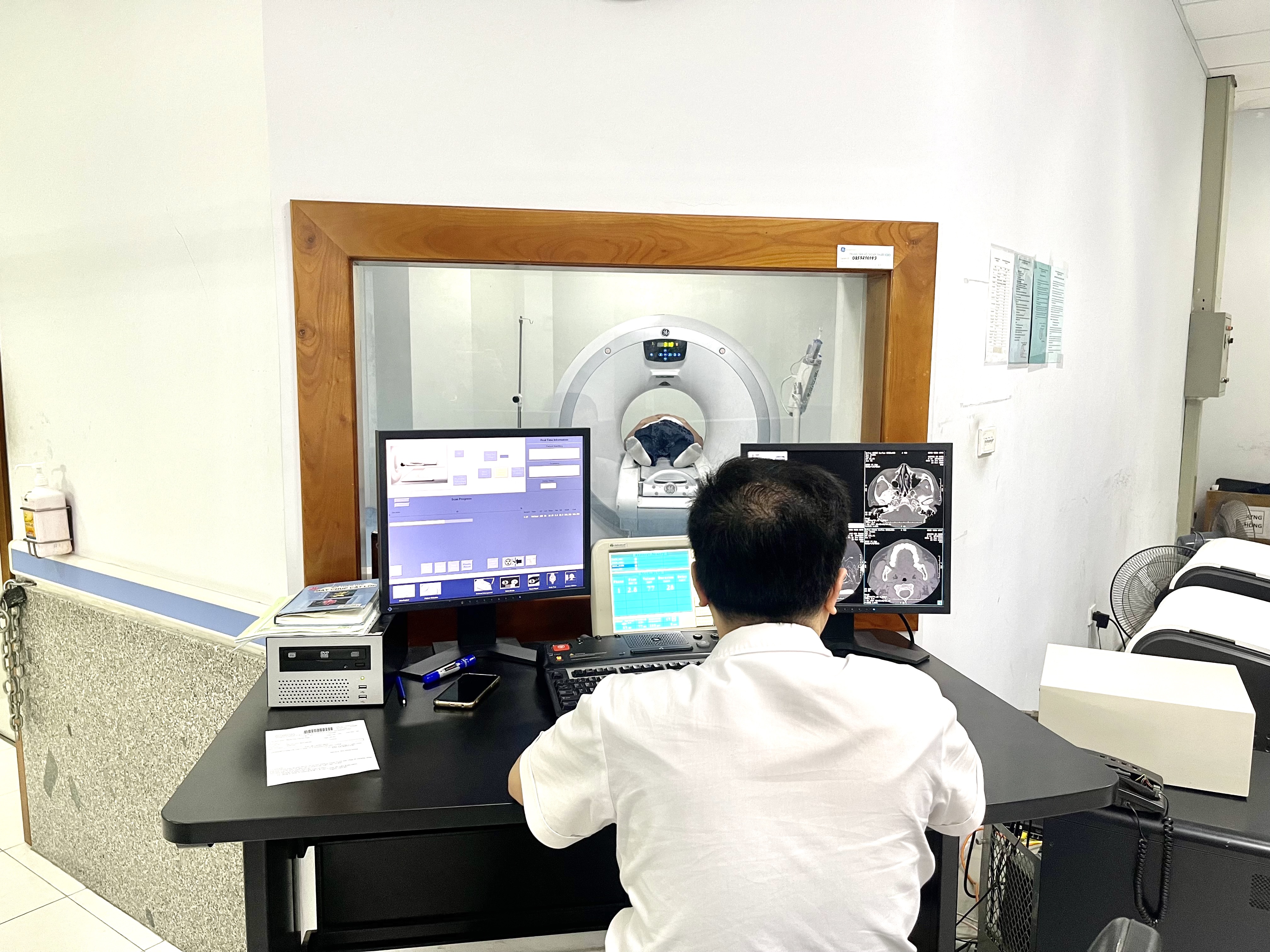Cán bộ nhân viên PVI chụp CT sọ não.