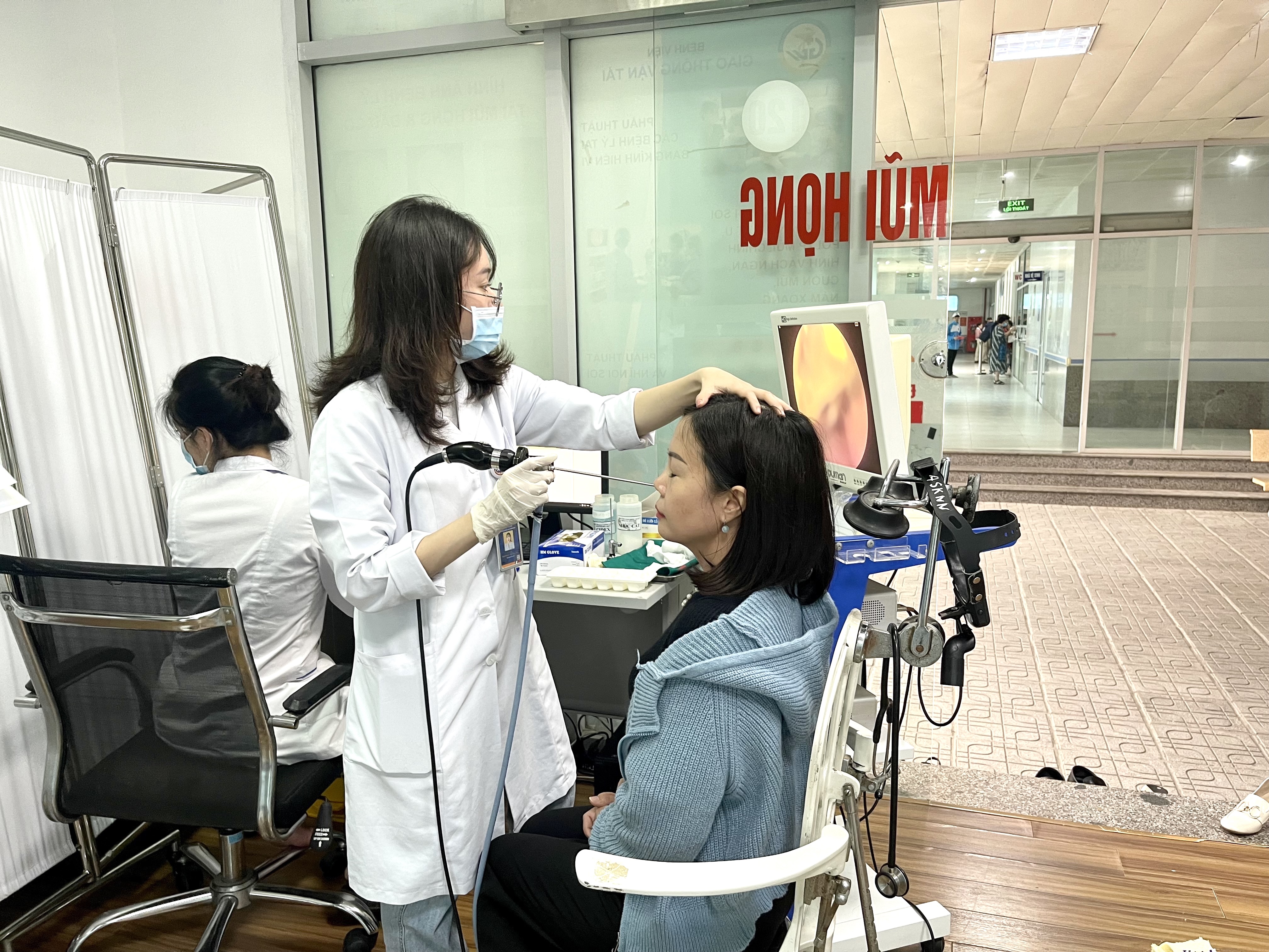 Bác sĩ nội soi Tai - Mũi - Họng cho cán bộ nhân viên PVI Thái Nguyên.