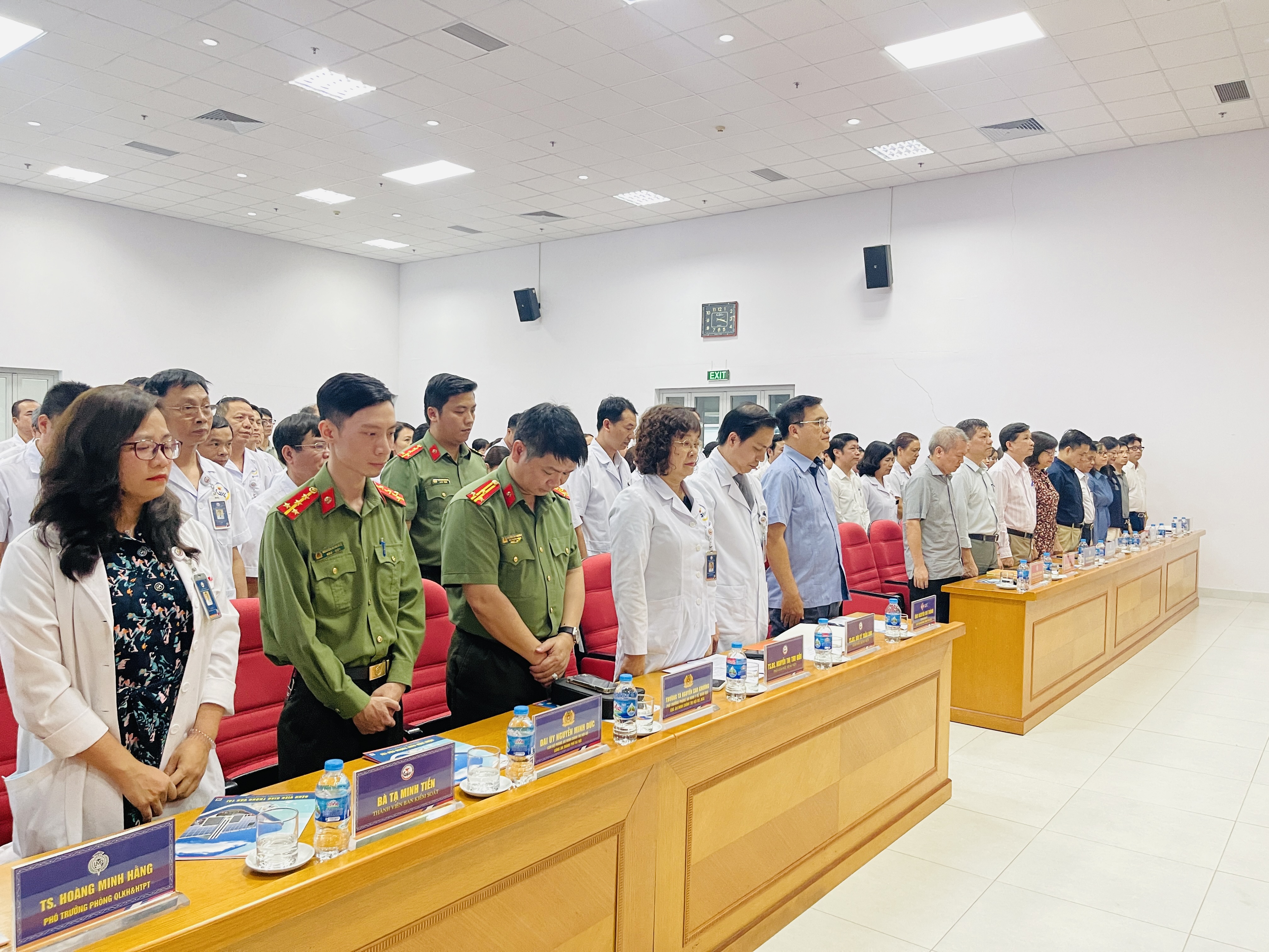 Trước buổi lễ ký kết hợp tác, toàn thể đại biểu và cán bộ nhân viên Bệnh viện Giao thông vận tải dành 1 phút mặc niệm tưởng nhớ Tổng Bí thư Nguyễn Phú Trọng.