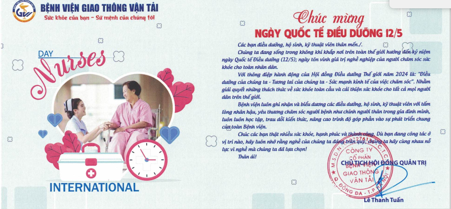 Thư chúc mừng ngày Quốc tế điều dưỡng 12/5 của Chủ tịch Hội đồng quản trị Lê Thanh Tuấn