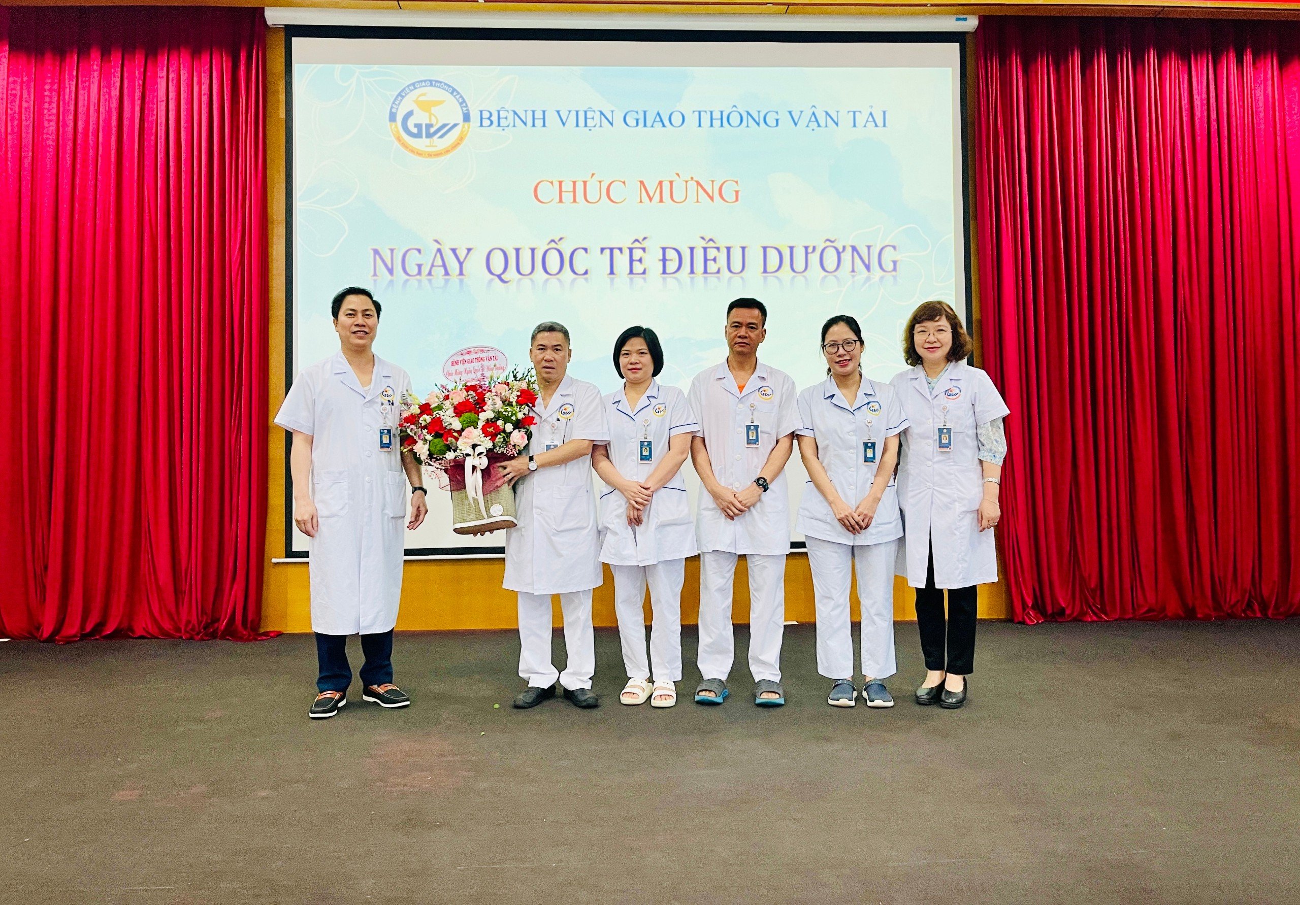 Ban Tổng giám đốc Bệnh viện tặng hoa chúc mừng cho đại diện cán bộ điều dưỡng Bệnh viện Giao thông vận tải