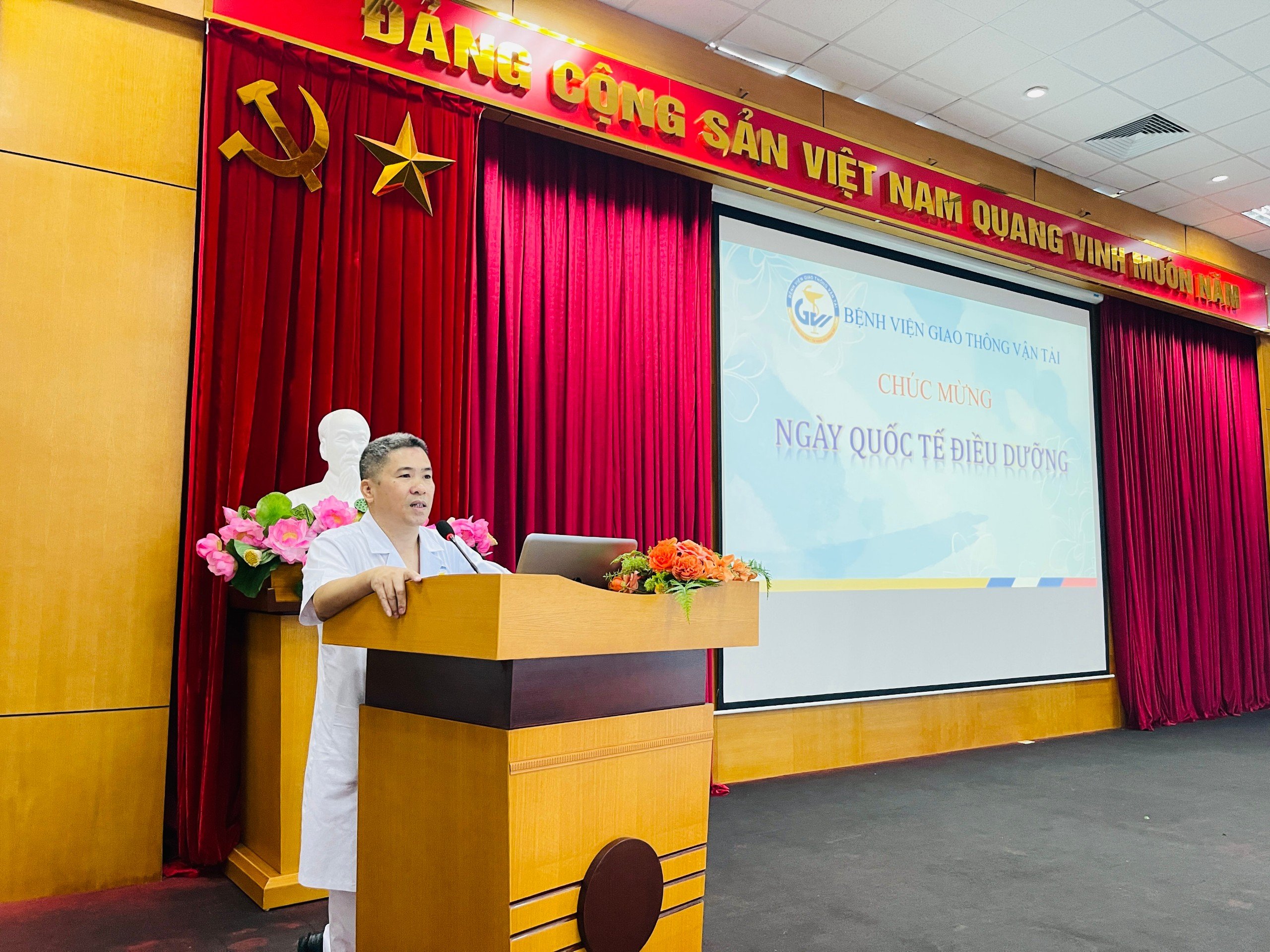 ThS. Hoàng Mạnh Toàn - Trưởng phòng Điều dưỡng Bệnh viện Giao thông vận tải phát biểu đáp từ.