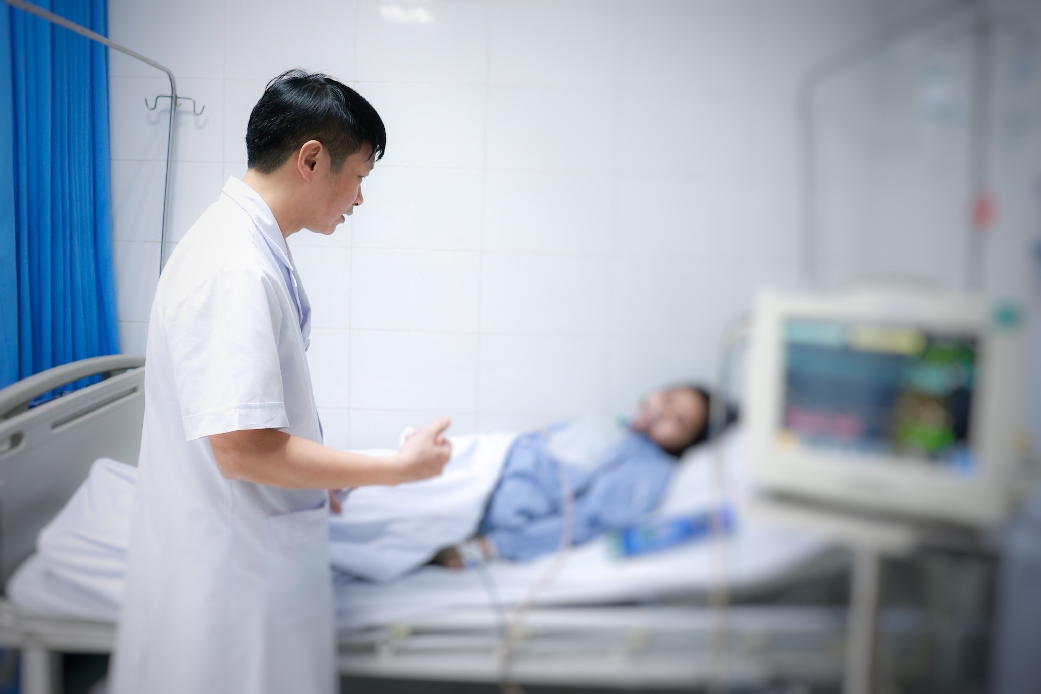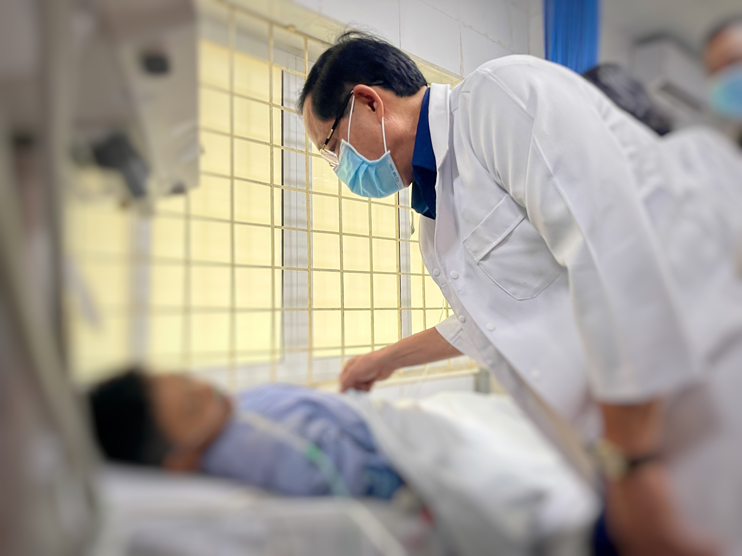 BSCKII. Bùi Hồng Giang – Trưởng khoa Cấp cứu Bệnh viện giao thông vận tải chăm sóc bệnh nhân