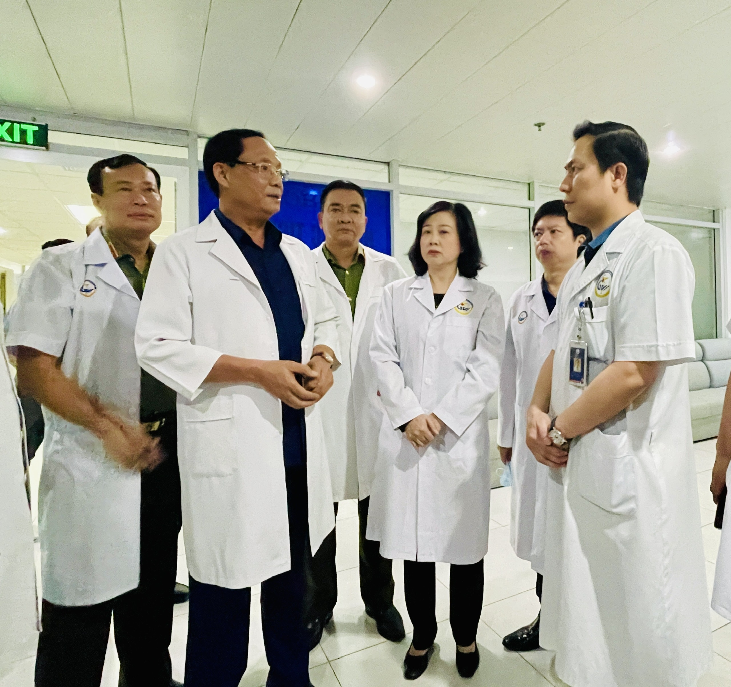 TS.BS Bùi Sỹ Tuấn Anh – Giám đốc Bệnh viện Giao thông vận tải báo cáo tình hình điều trị cho các nạn nhân với đoàn công tác của Phó Chủ tịch Quốc hội và Bộ trưởng Bộ y tế