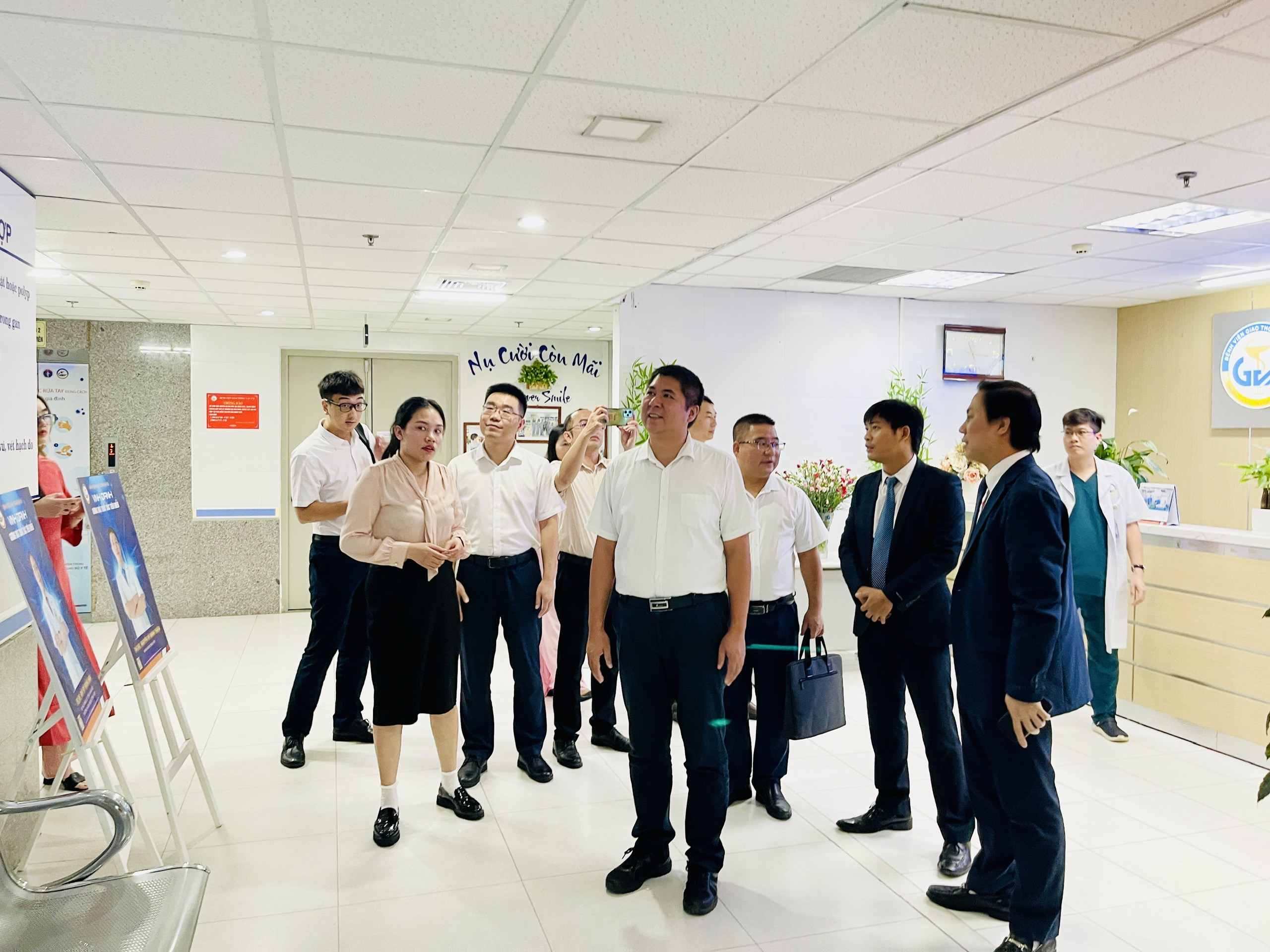 Đoàn công tác đi tham quan hoạt động của một số khoa tại Bệnh viện.