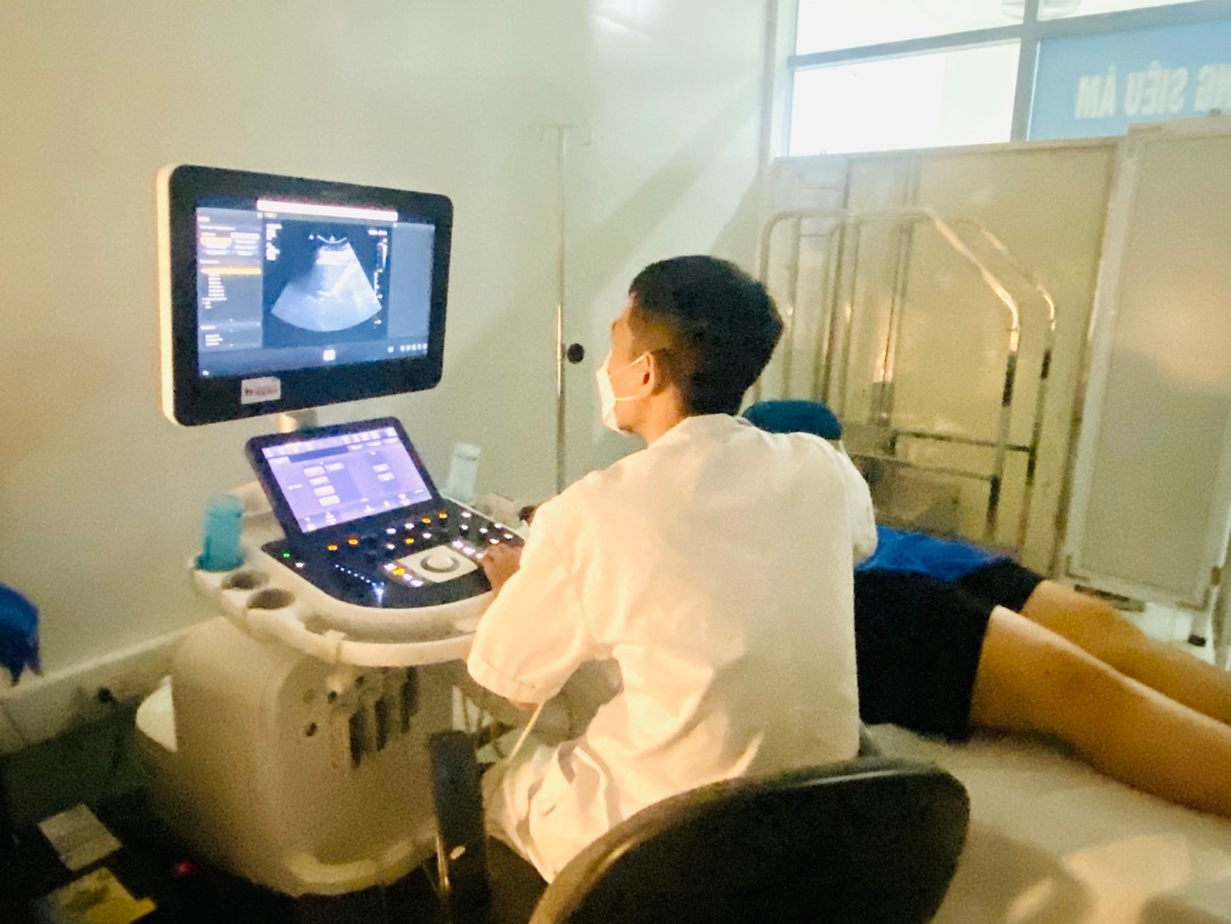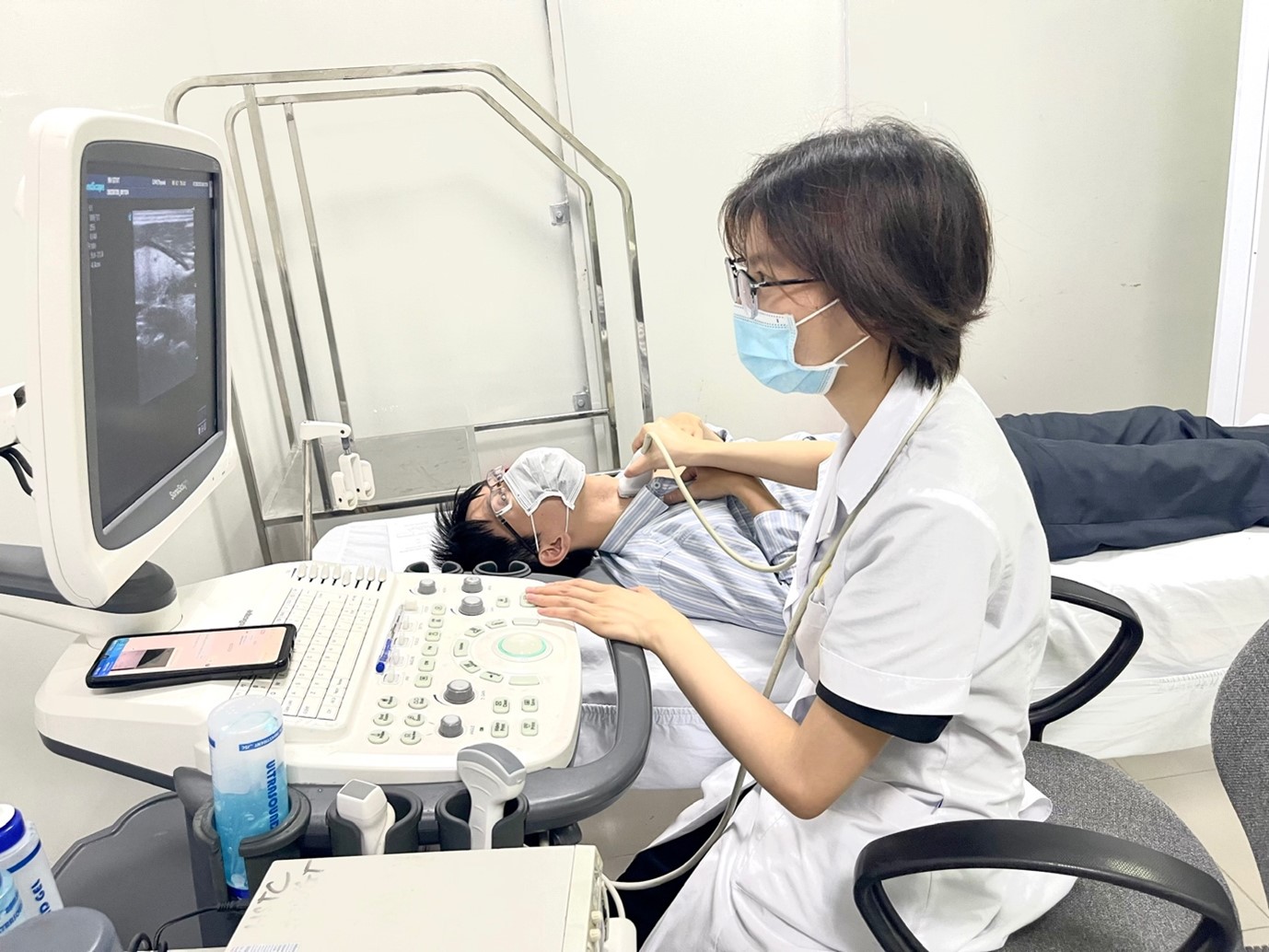 Bác sỹ thực hiện siêu âm tuyến giáp cho người lao động Công ty PVGAS CITY.