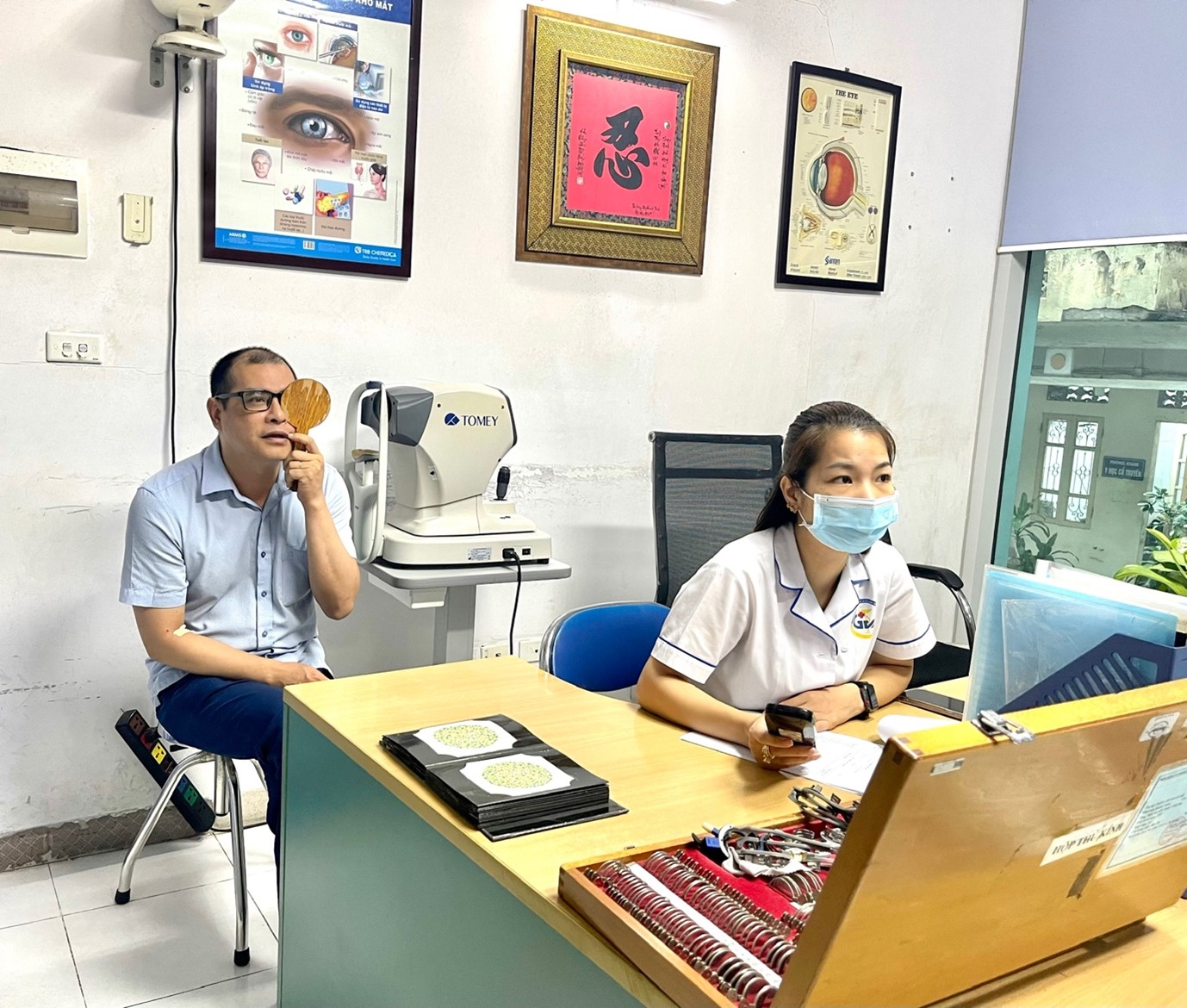 Cán bộ, người lao động của Công ty PVGAS CITY được các bác sỹ kiểm tra thị lực.