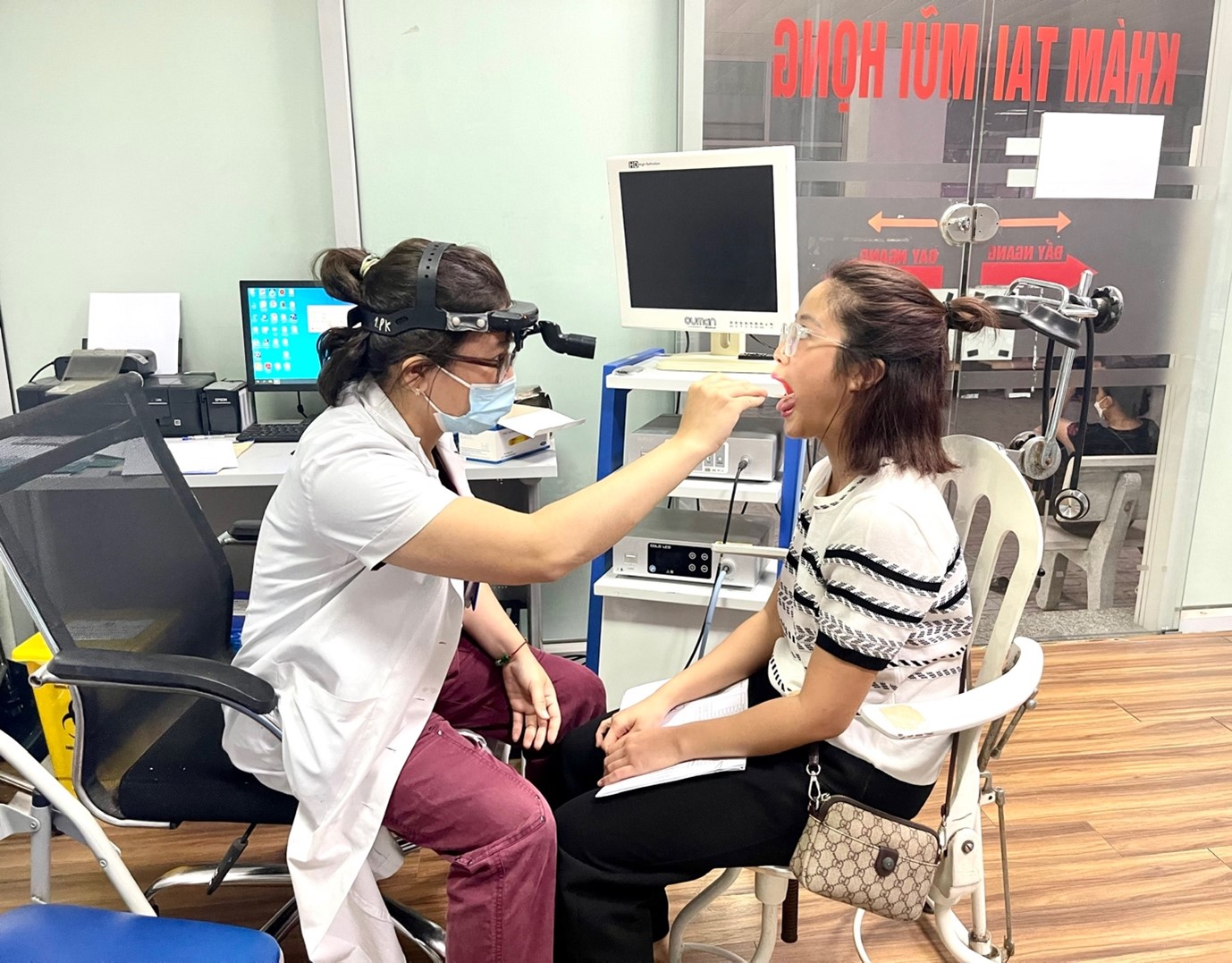 Bác sỹ thực hiện khám tai mũi họng cho cán bộ, người lao động Công ty PVGAS CITY.