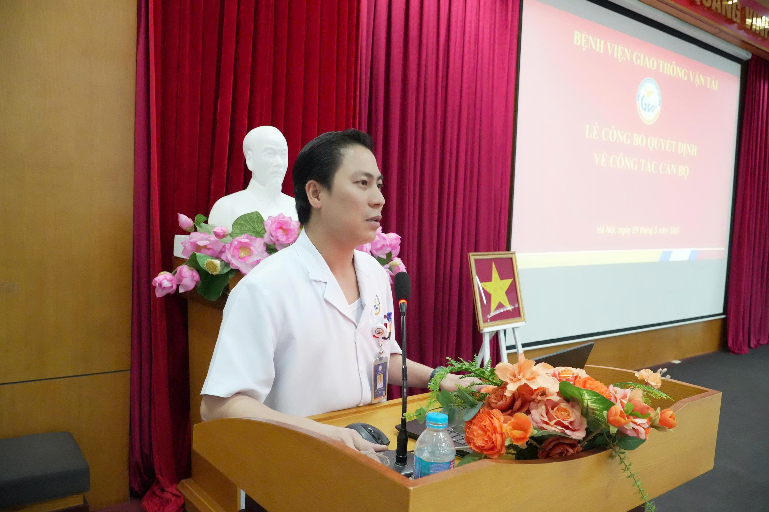 Phát biểu tại buổi lễ trao quyết định, Bác sỹ CKII Đỗ Ngọc Hiếu thay mặt toàn thể các cán bộ nhân viên được Ban Giám đốc giao nhiệm vụ ngày hôm nay cảm ơn sự tin tưởng của Ban lãnh đạo bệnh viện đồng thời cam kết hoành thành các nhiệm vụ được giao trên cương vị mới.