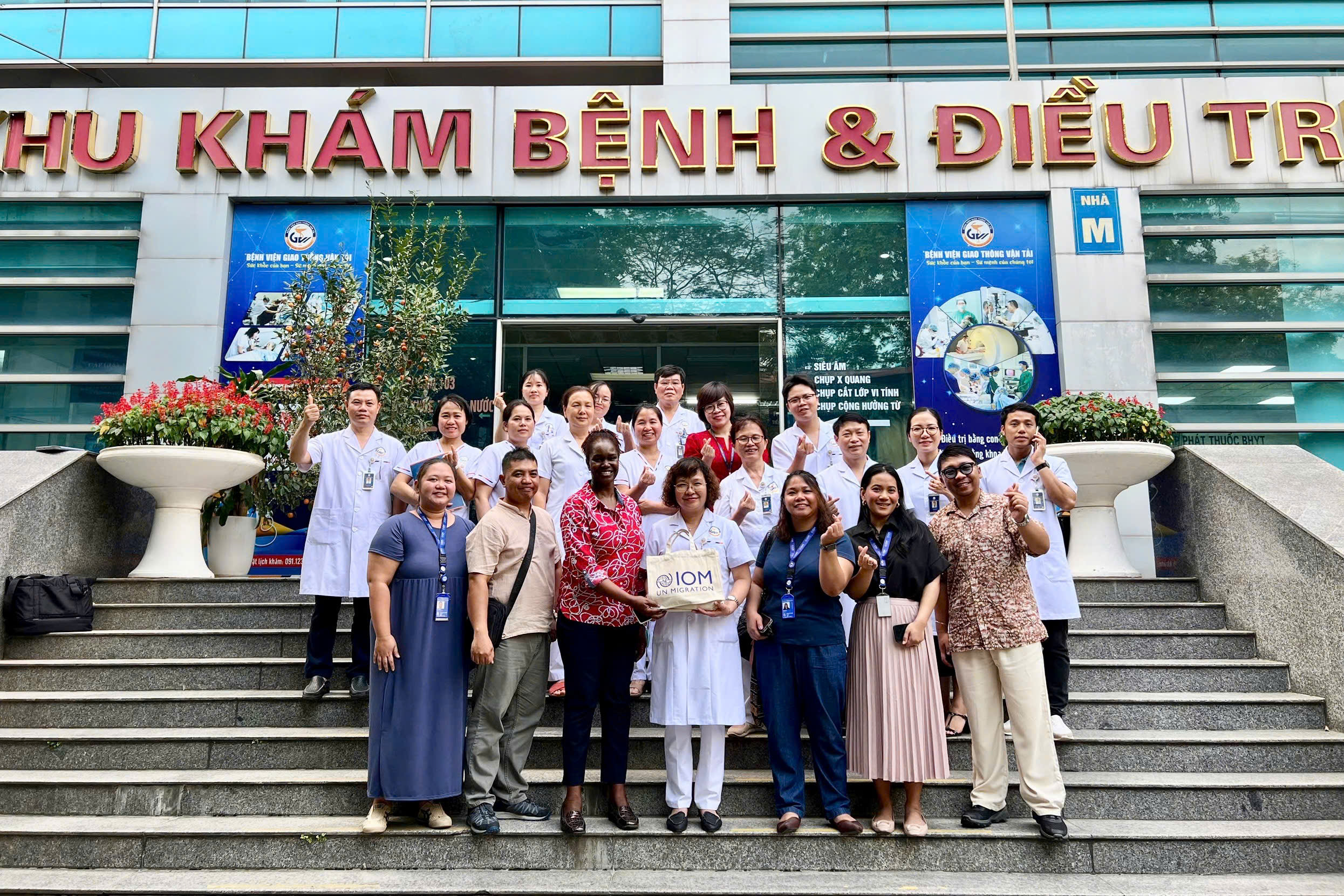 Đoàn công tác của IOM chụp ảnh kỷ niệm sau buổi kiểm tra quy trình tại Bệnh viện.