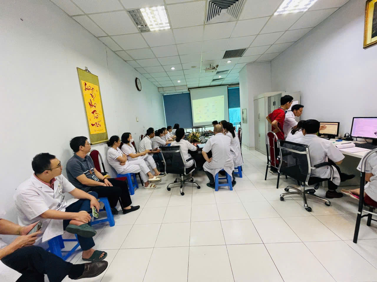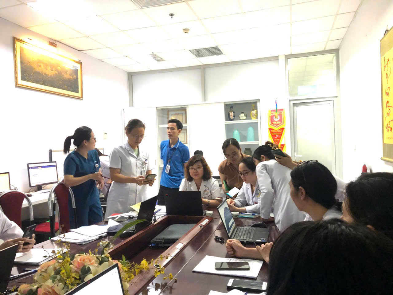 Các y bác sĩ Bệnh viện Giao thông vận tải họp trực tuyến với IOM về chương trình khám sàng lọc lao.