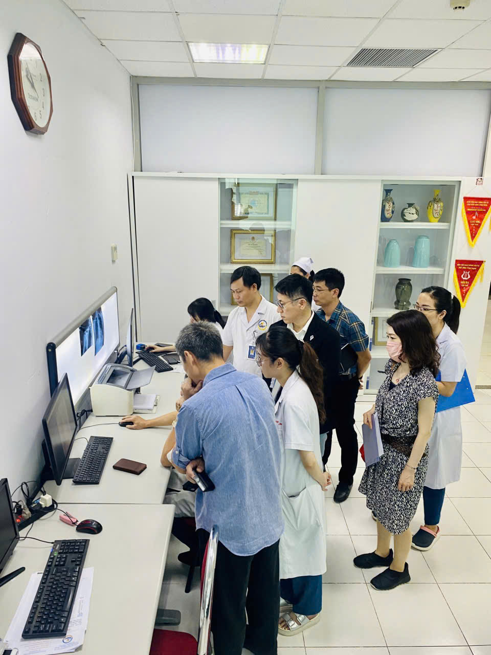 Đoàn chuyên gia Nhật Bản kiểm tra quy trình tầm soát lao tại Bệnh viện Giao thông vận tải.