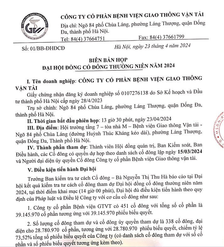 Biên bản họp Đại hội đồng cổ đông thường niên năm 202418:34 - 24/04/2024Hội Đồng Quản Trị, Thông tin, Hoạt Động Tài Chính, Thông tin chung, Quan hệ cổ đông, Biên bản họp Đại hội đồng cổ đông thường niên năm 2024 Tải xuống Biên bản và Nghị quyết họp ĐHĐCĐ thường niên năm 2024_signed.pdfChia sẻ: