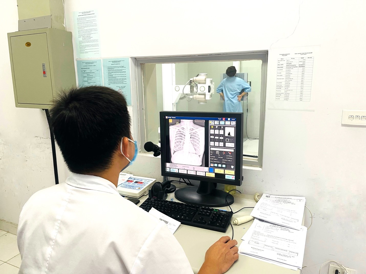 Cán bộ nhân viên Công ty Cổ phần Điện tử và Tin học Việt Nam chụp X-quang phổi.