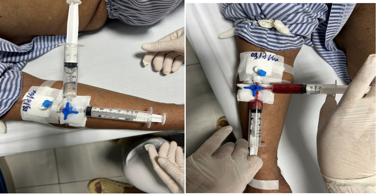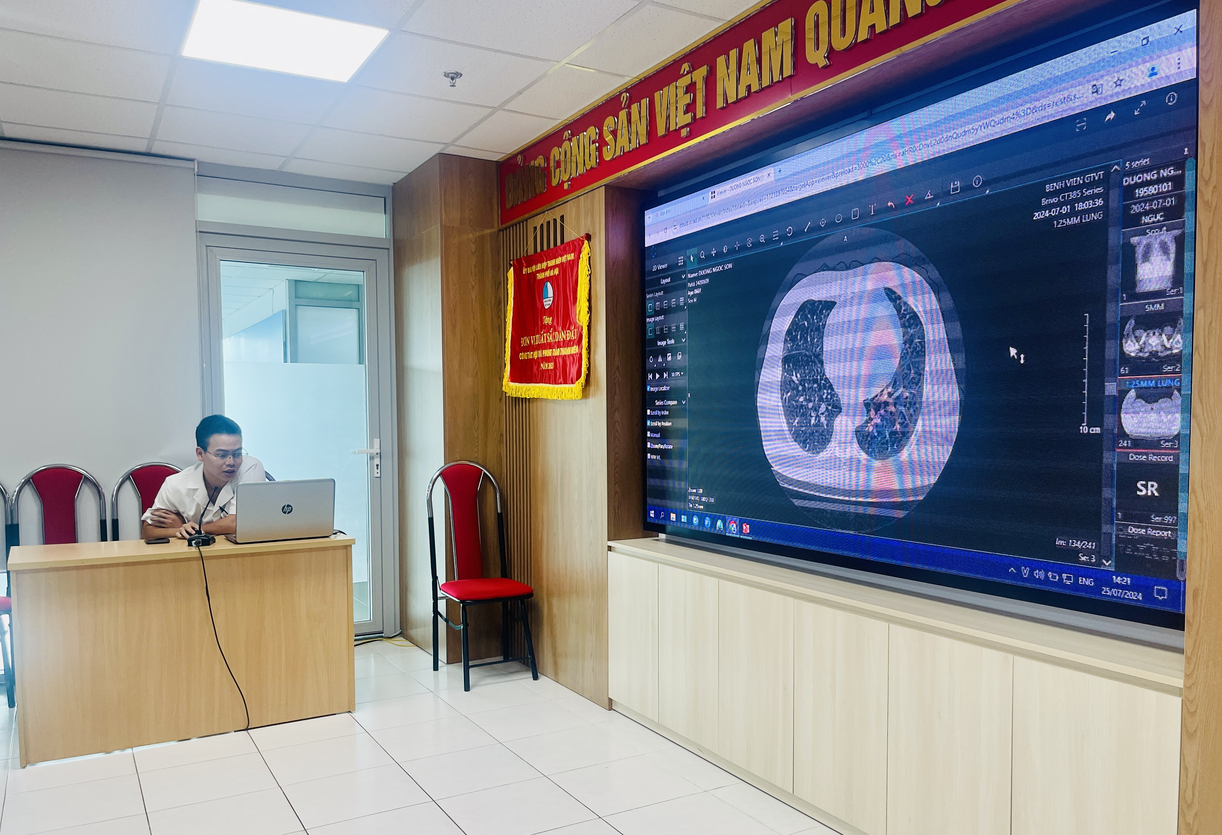 Nghi ngờ bệnh nhân có Hội chứng gan phổi, các bác sĩ khoa Cấp cứu đã tiến hành siêu âm tim tại giường với chất cản âm tự tạo (hỗn hợp 0.1ml khí, 09 ml nước muối NaCl 0.9%, 1ml máu của chính bệnh nhân) và cho kết quả dương tính. Sau điều trị 06 ngày bệnh nhân được xuất viện với liệu pháp thở oxy dài ngày và tư vấn ghép gan.