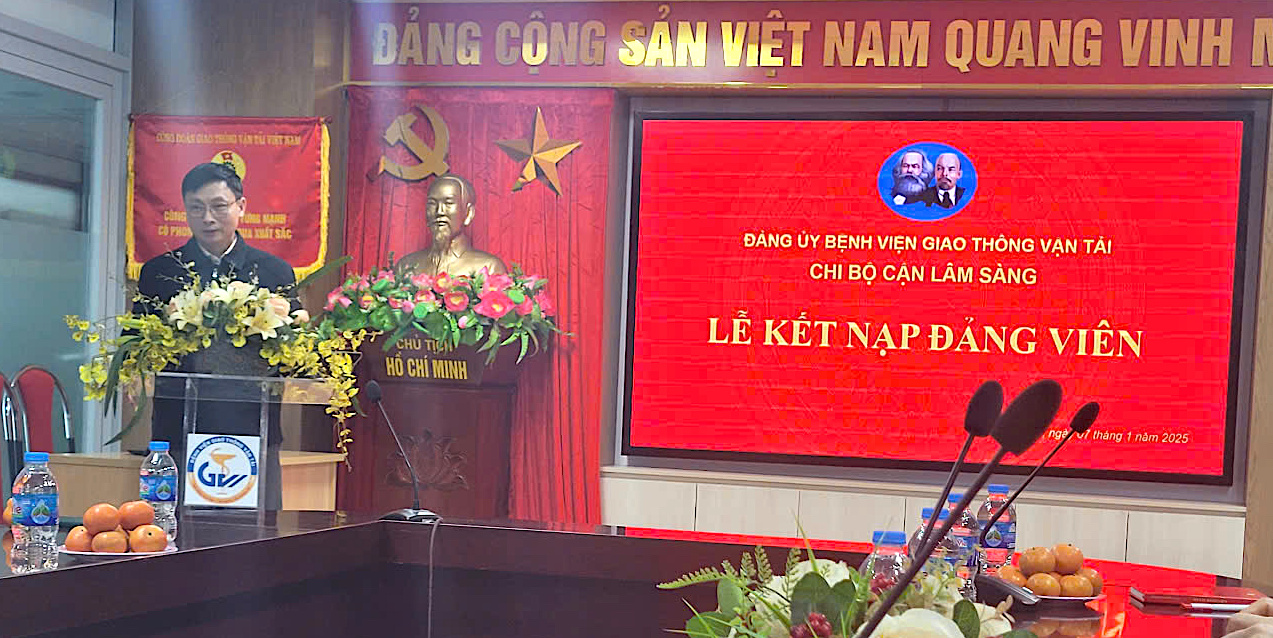 Ngày 07/01/2025, Chi bộ Cận lâm sàng thuộc Đảng bộ Bệnh viện Giao thông vận tải tổ chức Lễ kết nạp Đảng viên mới cho quần chúng ưu tú Phạm Quang Xiêm - Kỹ thuật viên Khoa Chẩn đoán hình ảnh.