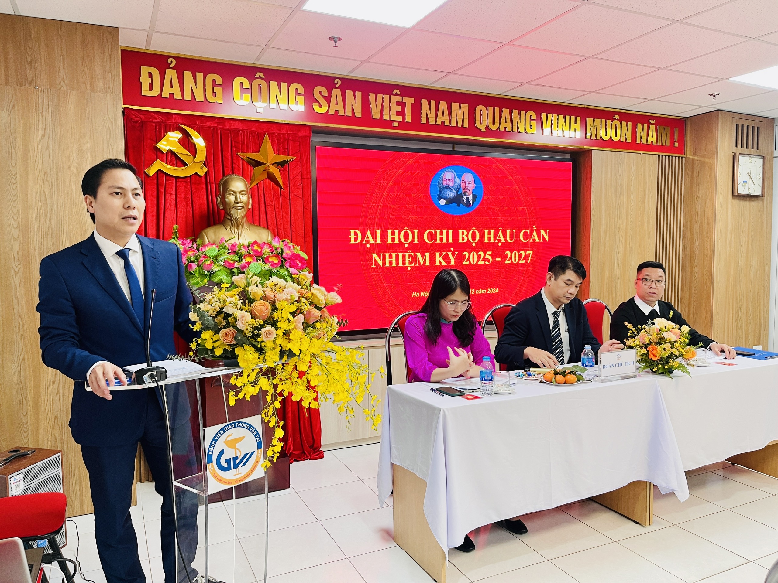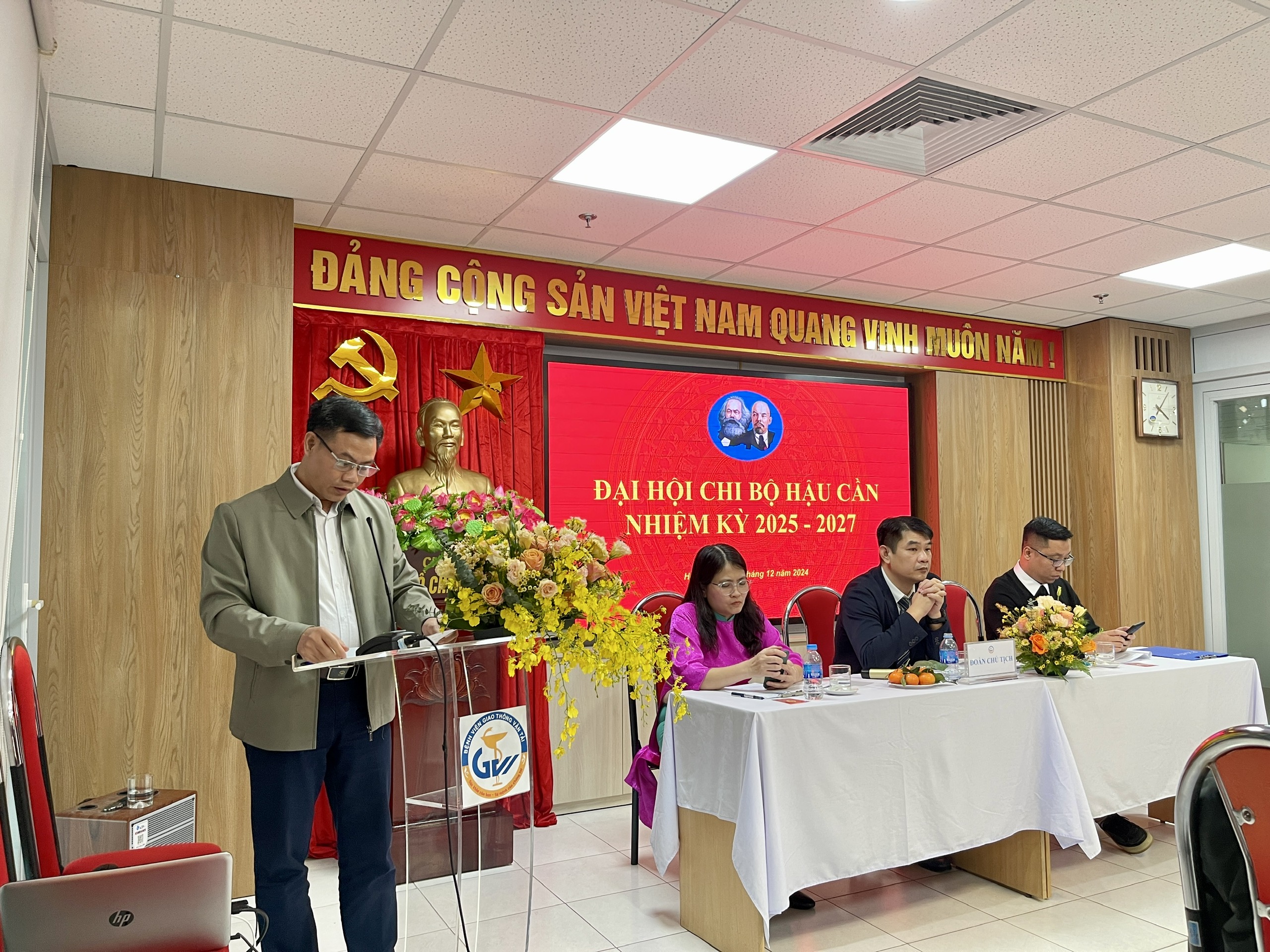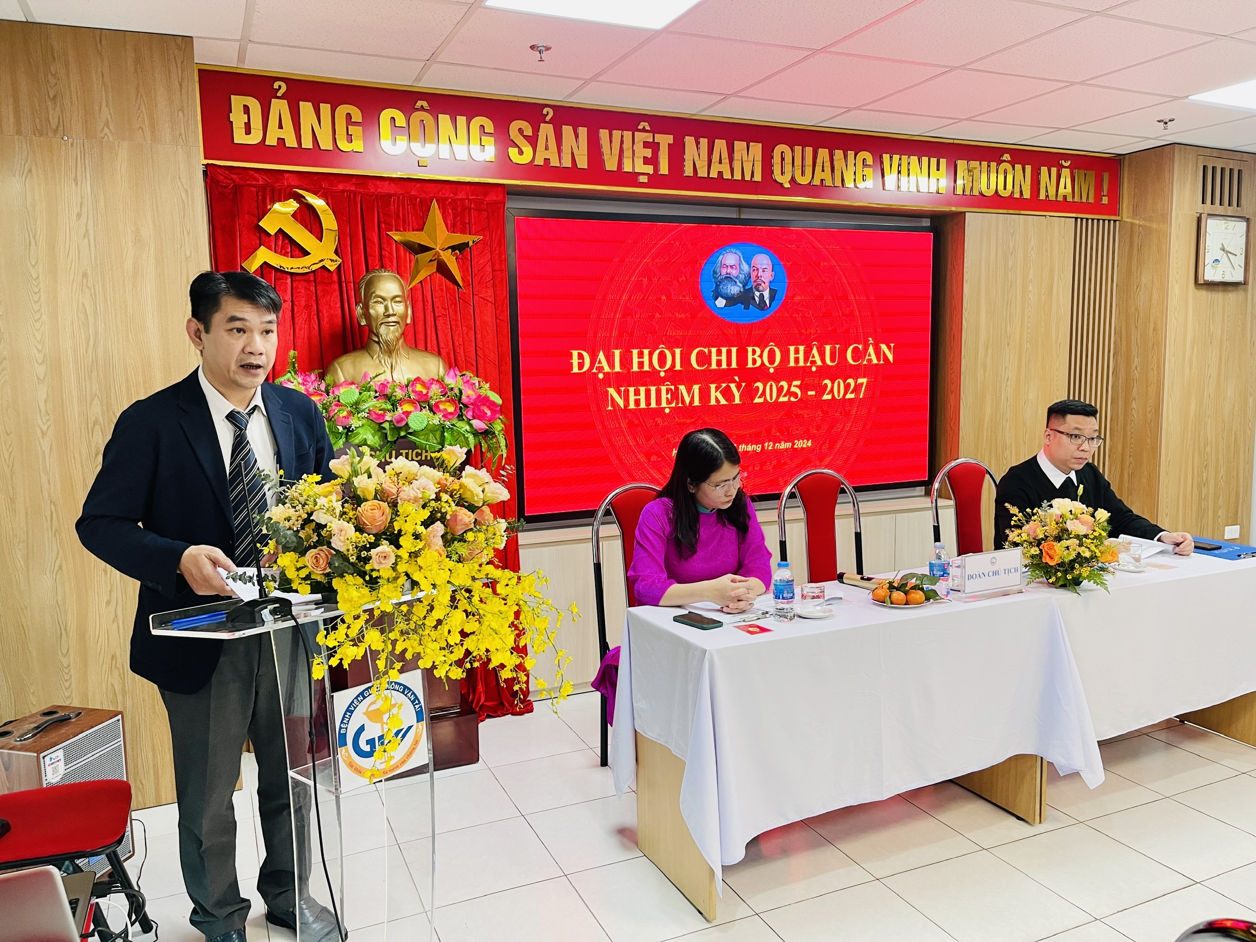 Với tinh thần làm việc khẩn trương, nghiêm túc và trách nhiệm, Đại hội Chi bộ Hậu cần đã bầu Chi ủy nhiệm kỳ 2025 - 2027 với Bí thư Chi bộ là đồng chí Đào Thị Thành Huyền - Kế toán trưởng, Trưởng phòng Tài chính kế toán, Phó bí thư Chi bộ là đồng chí Đào Văn Đức - Trưởng phòng Công nghệ thông tin và chi ủy viên là đồng chí Phạm Thùy Dương - Chuyên viên phòng Hành chính quản trị.