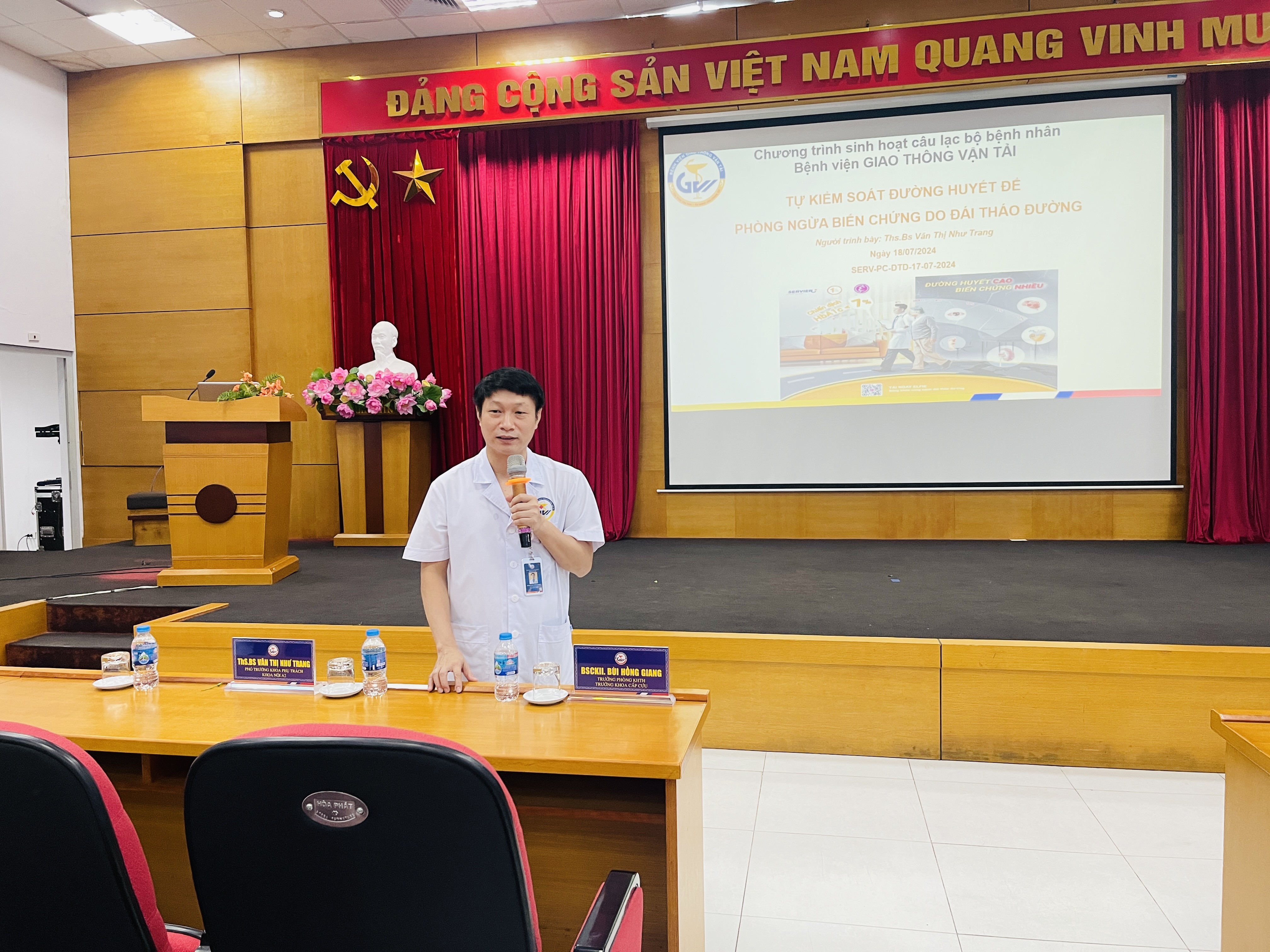 Phát biểu mở đầu buổi sinh hoạt, BSCK II Bùi Hồng Giang – Trưởng khoa Cấp cứu, Trưởng phòng Kế hoạch tổng hợp cho biết buổi sinh hoạt này là một trong chuỗi các hoạt động của CLB bệnh nhân đái tháo đường của Bệnh viện Giao thông vận tải. Thông qua các buổi sinh hoạt, Bệnh viện mong muốn có thể cung cấp, trao đổi được nhiều thông tin hơn đến các thành viên trong CLB, giúp cho các thành viên trong CLB bệnh nhân đái tháo đường có thể kiểm soát, điều trị bệnh tối ưu nhất và giảm thiểu các biến chứng của bệnh.