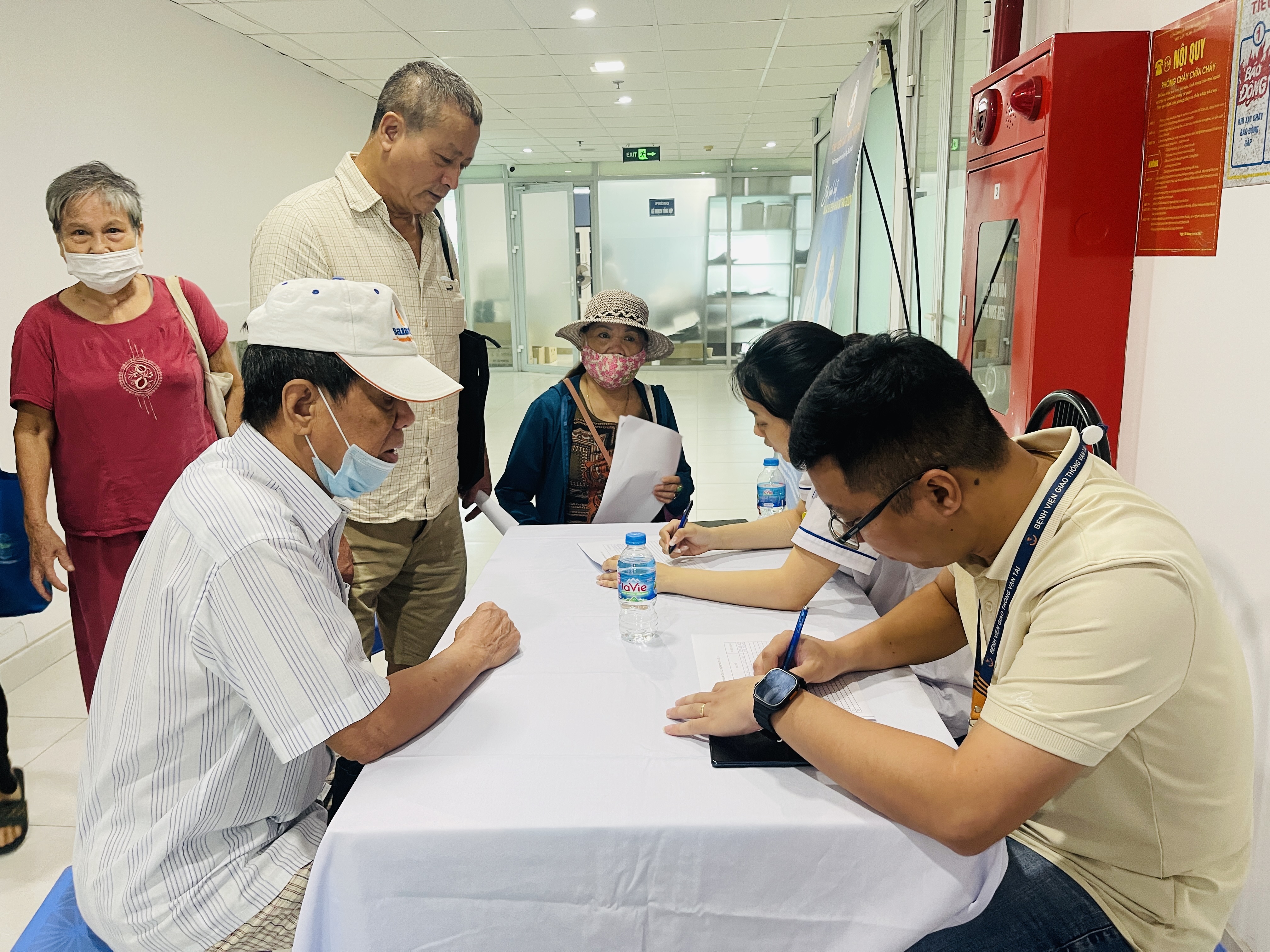 Các bệnh nhân đăng ký tham gia CLB bệnh nhân đái tháo đường của Bệnh viện Giao thông vận tải.