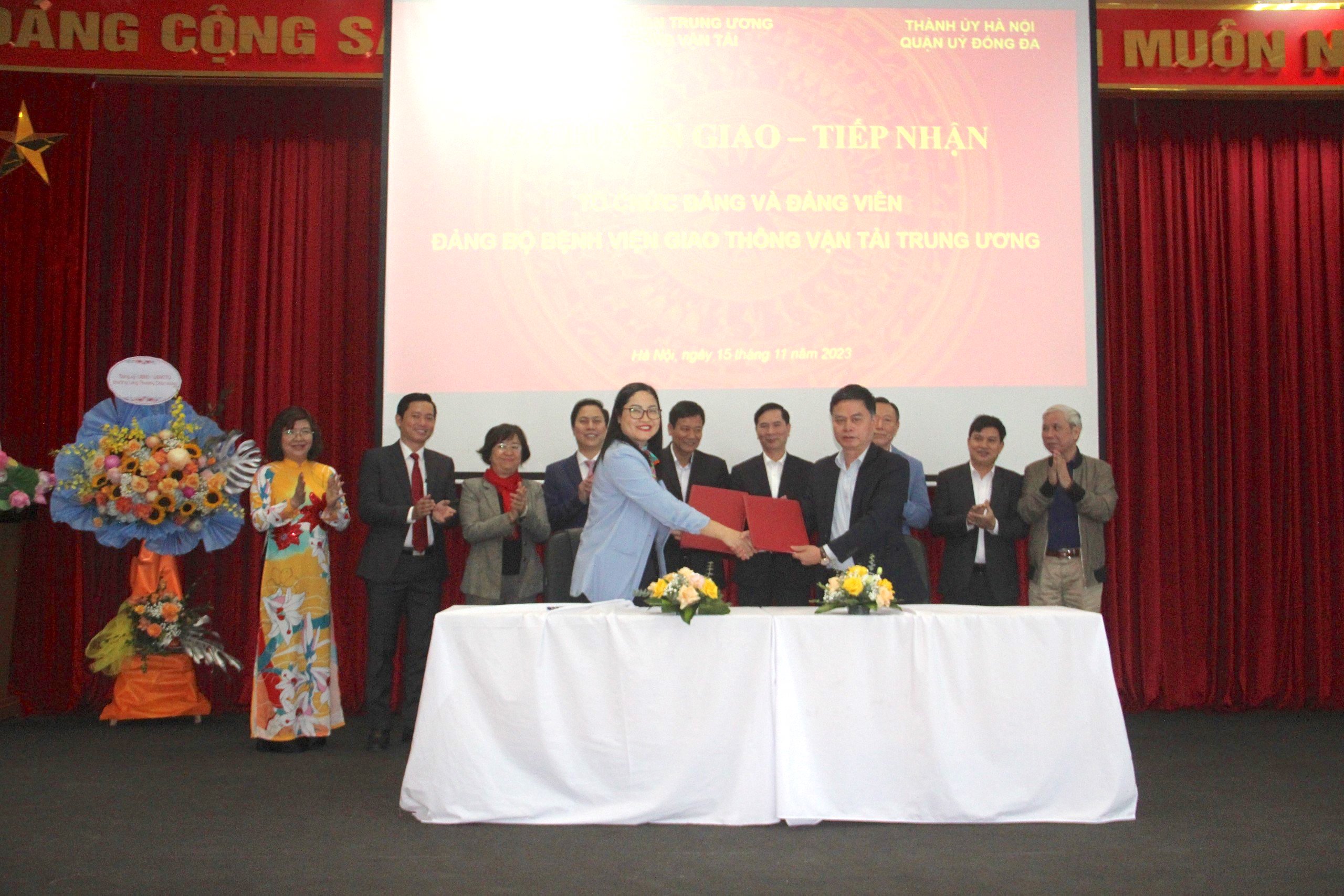 Sau lễ công bố và trao các Quyết định, diễn ra Lễ ký biên bản bàn giao, tiếp nhận tổ chức đảng và đảng viên. Thay mặt Ban Thường vụ, đồng chí Đoàn Huy Khương, Ủy viên Ban Thường vụ, Trưởng Ban Tổ chức Đảng ủy Bộ GTVT; Hoàng Thị Phương Ngọc, Ủy viên Ban Thường vụ, Trưởng Ban Tổ chức Quận ủy Đống Đa ký Biên bản bàn giao sổ danh sách đảng viên và hồ sơ đảng viên của Đảng bộ Bệnh viện GTVT Trung ương với sự chứng kiến của đại diện lãnh đạo các cơ quan, đơn vị.