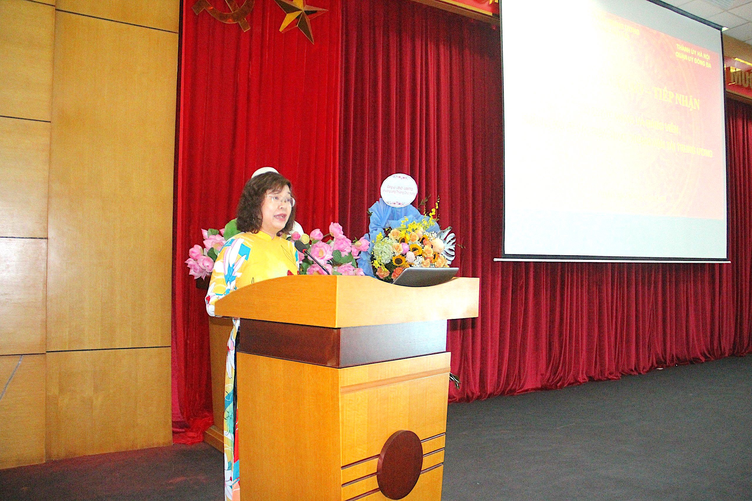Đồng chí Nguyễn Thị Thu Hiền - Phó Bí thư Đảng ủy, Phó Tổng giám đốc Bệnh viện báo cáo tại buổi lễ.