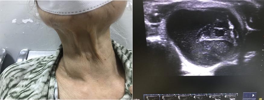 Bệnh viện Giao thông vận tải đã tiến hành điều trị cho bệnh nhân nữ 80 tuổi, có biểu hiện sờ thấy khối vùng cổ bên phải. Qua thăm khám và hình ảnh siêu âm cho thấy, bệnh nhân có nang thùy phải tuyến giáp kích thước 30x40mm.