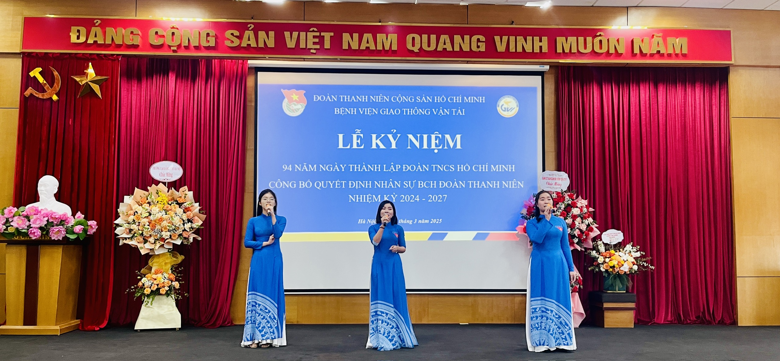 Chiều 24/3/2025, Đoàn TNCS Hồ Chí Minh Bệnh viện Giao thông vận tải (Đoàn Thanh niên Bệnh viện) đã tổ chức Lễ kỷ niệm 94 năm Ngày thành lập Đoàn TNCS Hồ Chí Minh (26/3/1931 – 26/3/2025) và công bố quyết định nhân sự BCH Đoàn Thanh niên nhiệm kỳ 2024 - 2027.