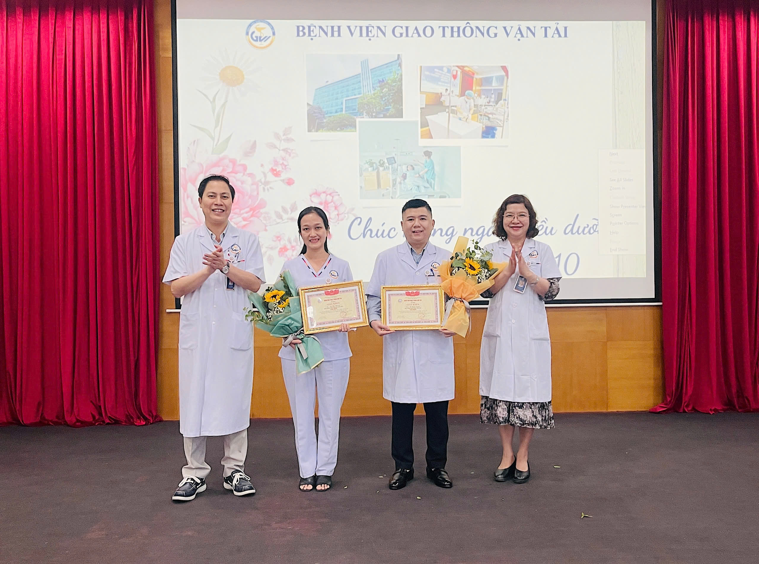 Cũng tại chương trình kỷ niệm này, Ban Giám đốc, Ban Tổ chức kỳ kiểm tra đã khen thưởng các tập thể và cá nhân đã có thành tích trong kỳ thi kiểm tra đánh giá năng lực điều dưỡng, nữ hộ sinh và kỹ thuật viên của Bệnh viện năm 2024.