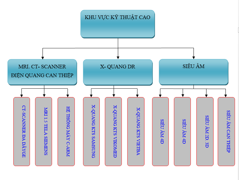 + Căn cứ vào mô hình phát triển bệnh viện. Khoa CĐHA sẽ phát triển kỹ thuật theo mô hình dưới đây.