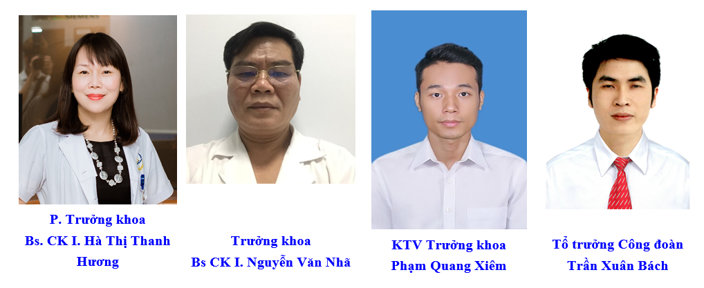 | BSCK1. Nguyễn Văn Nhã BS CKI. Hà Thị Thanh Hương ThS. Trần Xuân Bách BS. Hoàng Đoàn Sơn Tùng BS. Trần Thị Thanh Xuân BS. Mạc Đăng Dũng