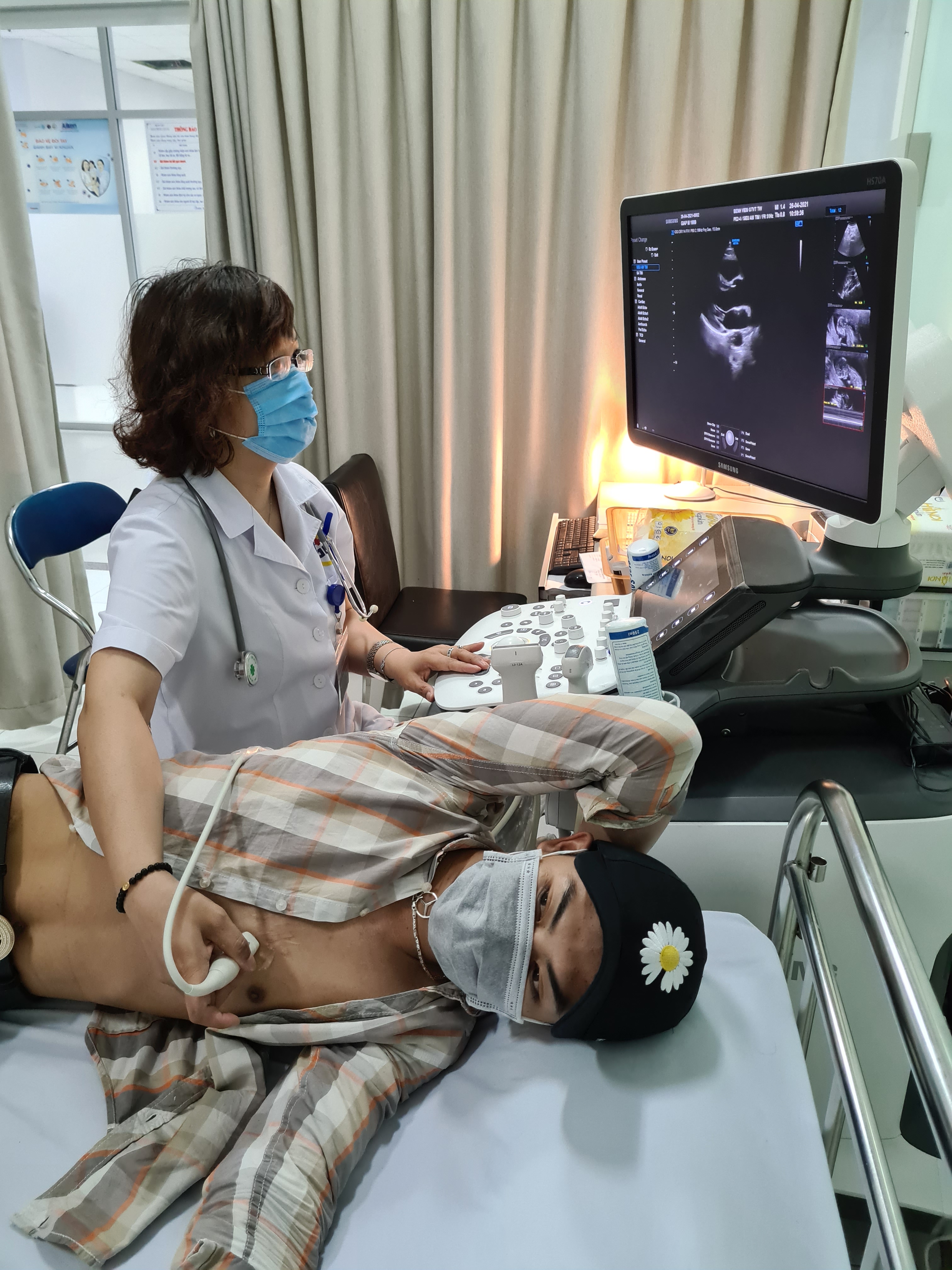 TS.BS. Trưởng khoa - Nguyễn Thị Thu Hiền đang thực hiện siêu âm tim cho Bệnh nhân