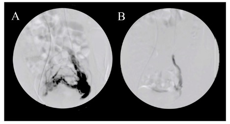 - Chụp tĩnh mạch buồng trứng ngược dòng qua ống thông qua da (chụp tĩnh mạch buồng trứng ngược dòng) cho thấy các tĩnh mạch buồng trứng ngoằn ngoèo và giãn (đường kính trên 6 mm), trào ngược tĩnh mạch và tắc nghẽn đám rối tĩnh mạch buồng trứng, và thời gian rửa trôi của chất cản quang trong khung chậu cần hơn 20 giây. Hiện nay, chụp tĩnh mạch buồng trứng ngược dòng được coi là tiêu chuẩn vàng để chẩn đoán.