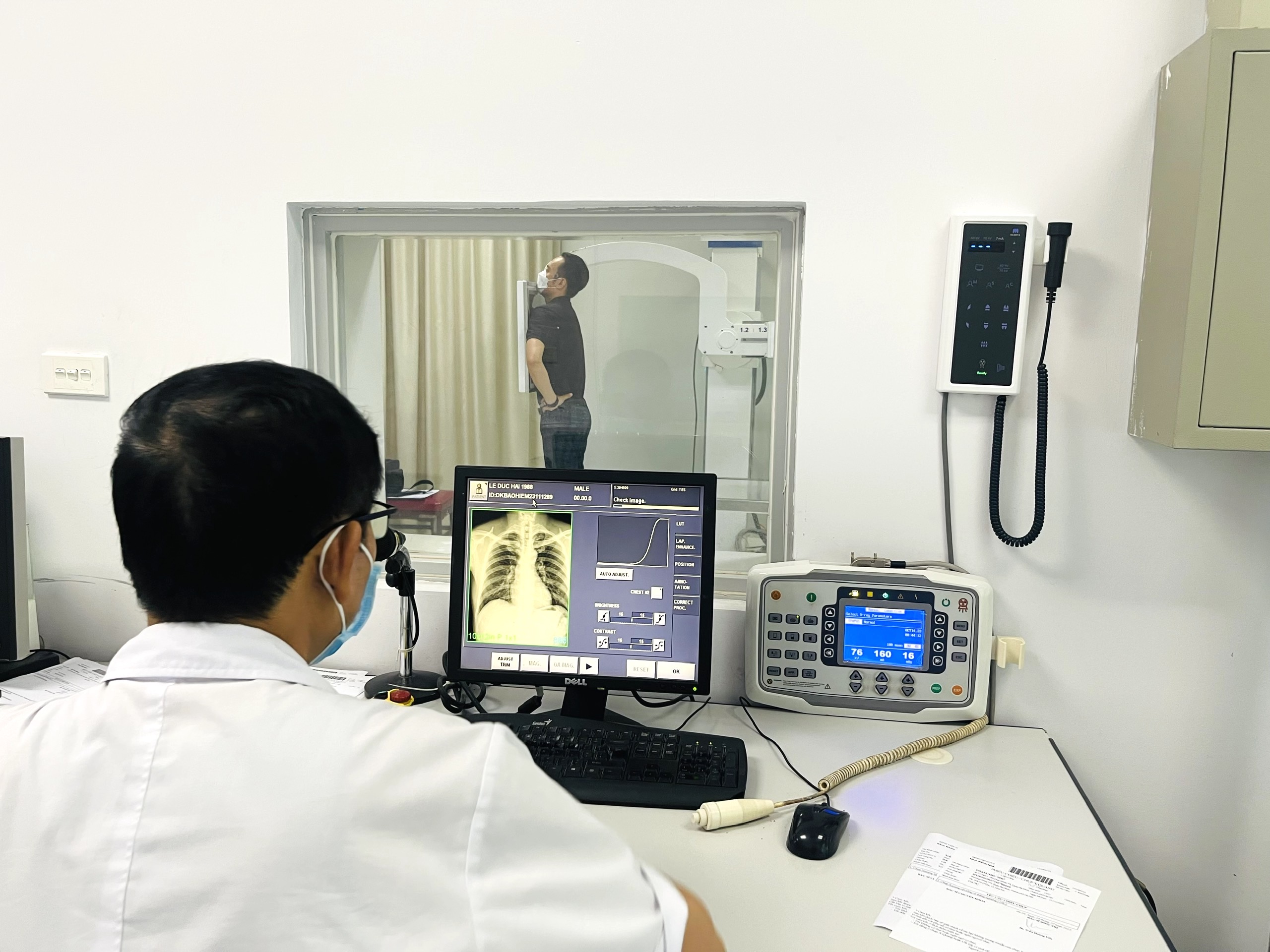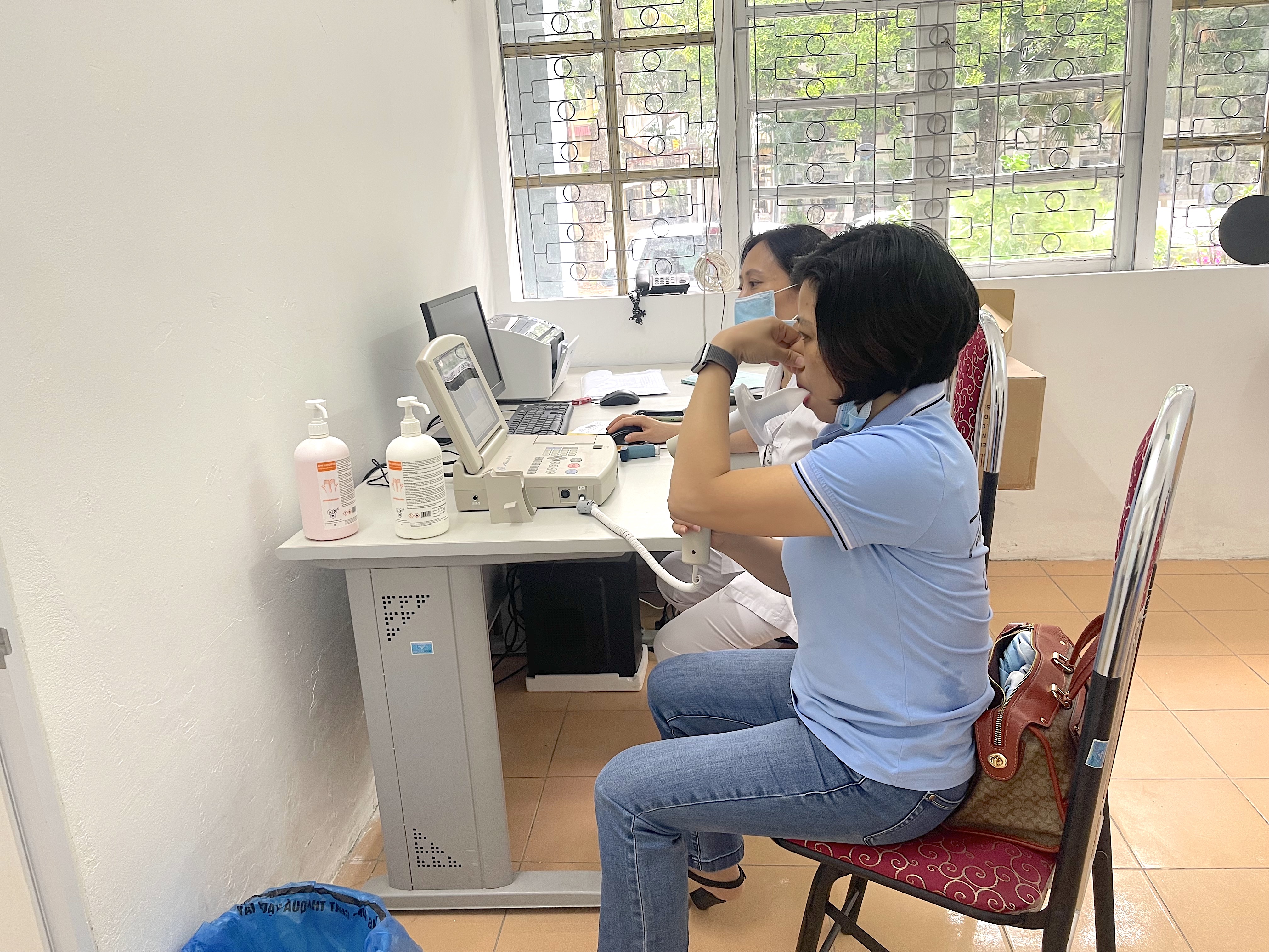 Cán bộ nhân viên Toyota Mỹ Đình đo chức năng hô hấp.
