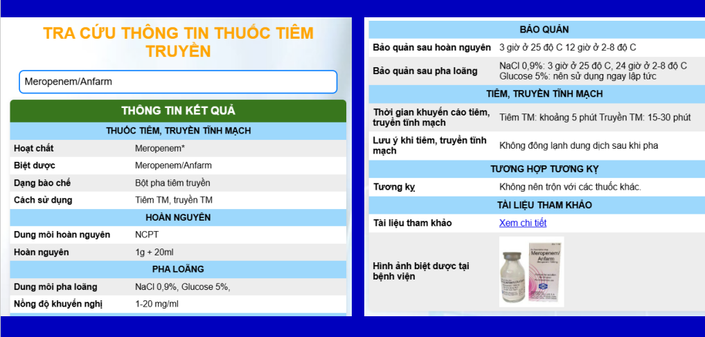 Link tra cứu thông tin thuốc tiêm truyền: