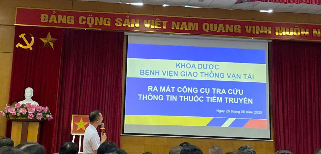 Dưới sự hướng dẫn của PGS.TS.DS. Nguyễn Thành Hải – Trưởng Đơn vị Nghiên cứu và Ứng dụng chuyển đổi số trong Dược lâm sàng, Trường Đại học Dược Hà Nội, Khoa Dược Bệnh viện Giao thông vận tải đã xây dựng và phát triển Bộ công cụ “Tra cứu thông tin thuốc tiêm truyền” với nội dung được chuẩn hóa, cập nhật liên tục, theo định hướng ứng dụng chuyển đổi số trong thực hành dược lâm sàng.