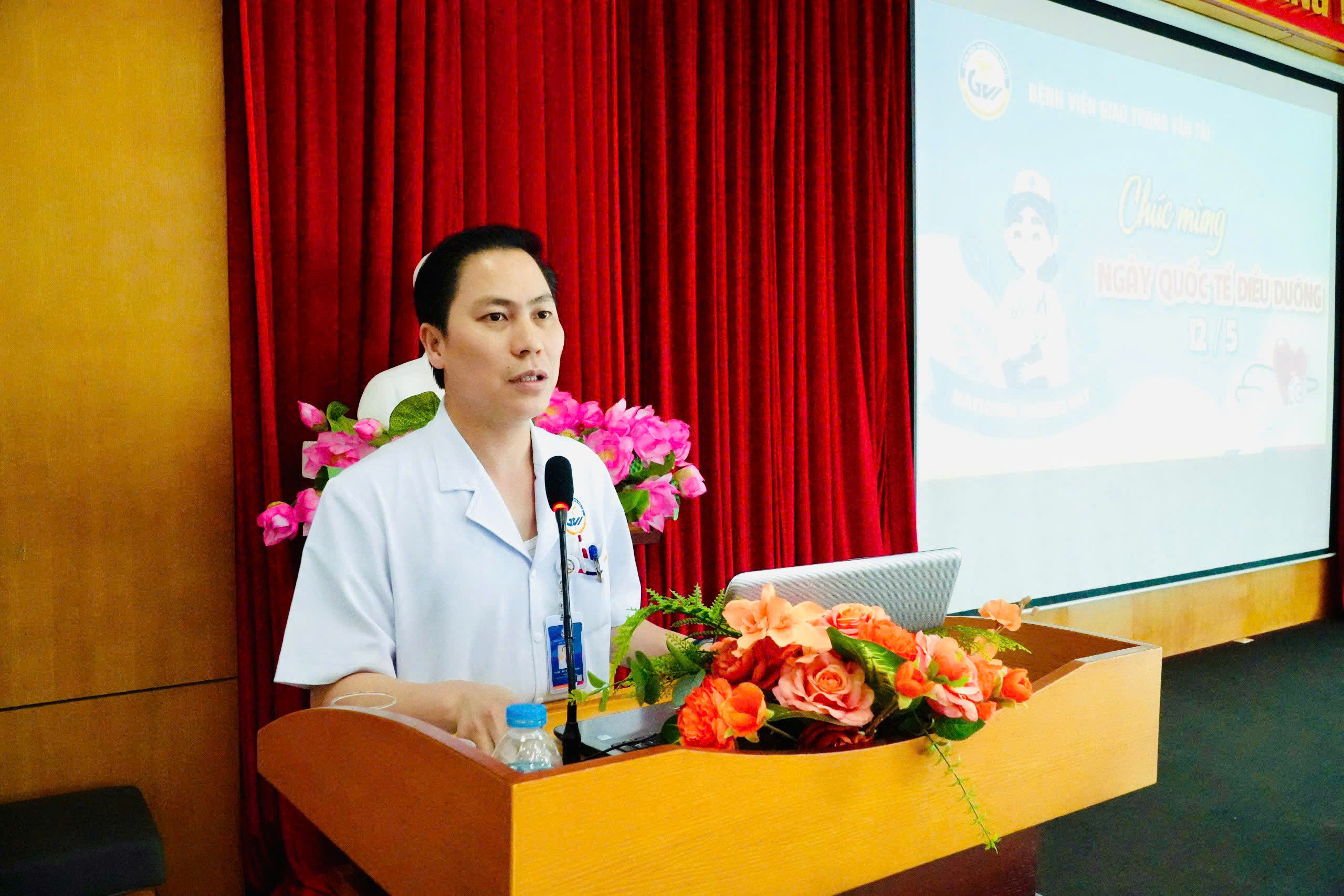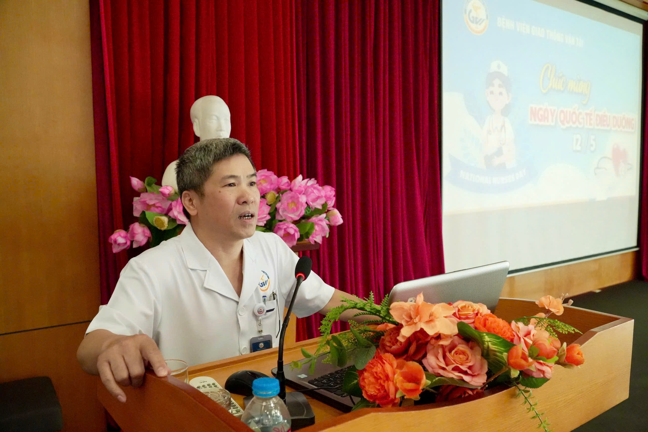 “Trong những năm qua, ngành điều dưỡng được chú trọng quan tâm phát triển, đặc biệt được thể hiện ở 5 điểm nhấn phát triển đáng ghi nhận là Điều dưỡng được mở cơ sở dịch vụ điều dưỡng; được đào tạo văn bằng chuyên khoa sau đại học và chứng chỉ chuyên khoa; được mở rộng phạm vi hoạt động chuyên môn, được chỉ định một số kỹ thuật chăm sóc; được bổ nhiệm ngạch viên chức Hạng I; được đào tạo tiến sĩ trong nước và Bộ Y tế đang xem xét cho phép đào tạo Điều dưỡng CK2. Tại Bệnh viện Giao thông vận tải trong những năm gần đây, chất lượng chăm sóc người bệnh được chú trọng quan tâm, phát triển chuyên môn nghiệp vụ để có thể phục vụ tốt nhất cho người bệnh. Tôi cũng hy vọng các điều dưỡng viên của Bệnh viện đã chọn nghề thì cống hiến tận tâm cho nghề, tự học hỏi trau dồi chuyên môn và đoàn kết trong công việc để có thể triển khai nhiệm vụ tốt nhất”, ThS. Hoàng Mạnh Toàn nhấn mạnh.