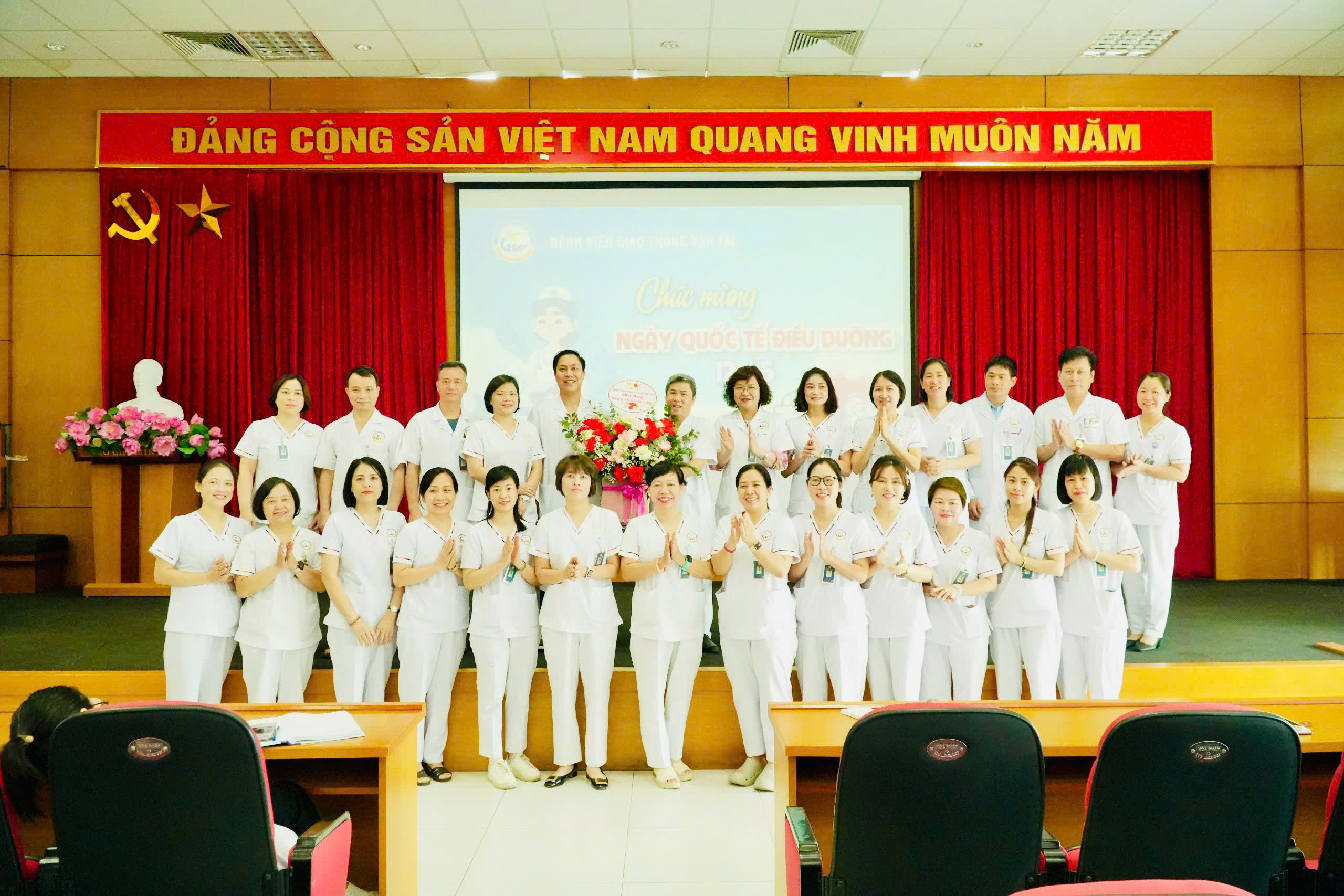 Tại chương trình kỷ niệm, Ban Thường vụ Đảng ủy, Ban Giám đốc Bệnh viện đã tặng hoa chúc mừng đội ngũ điều dưỡng viên của Bệnh viện nhân ngày Quốc tế Điều dưỡng năm 2025